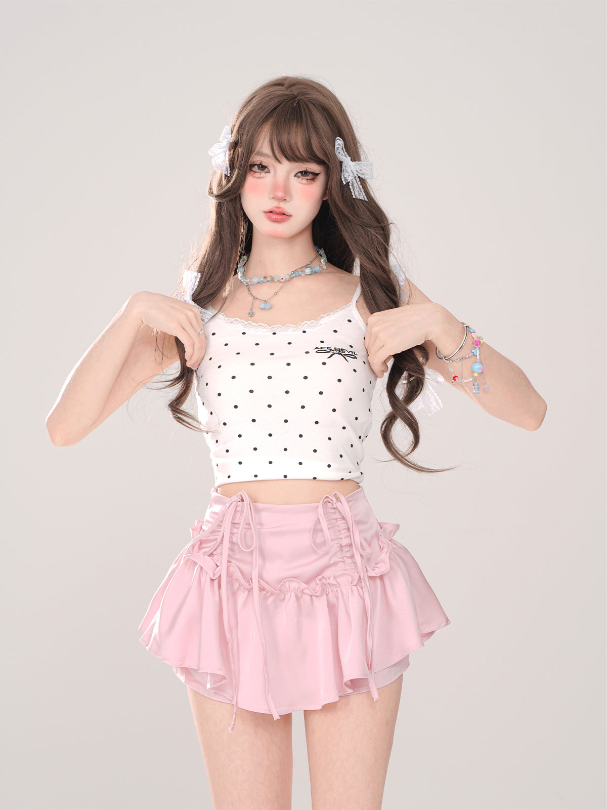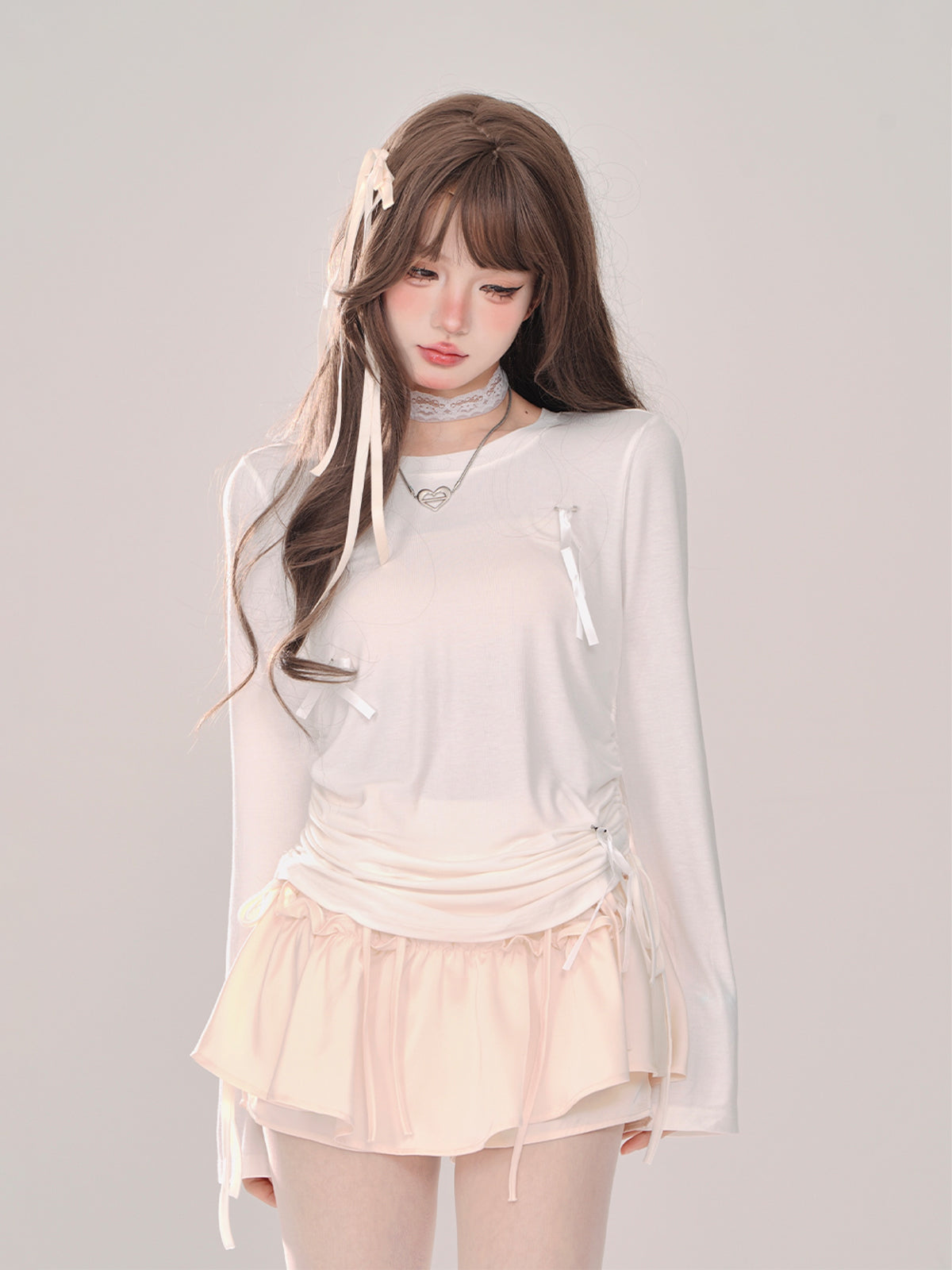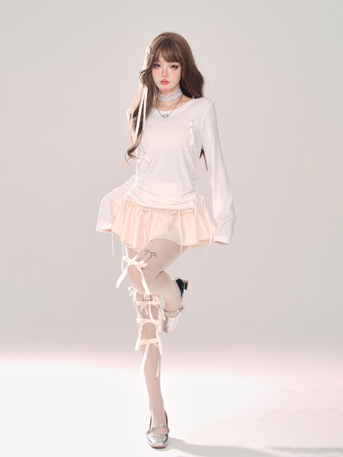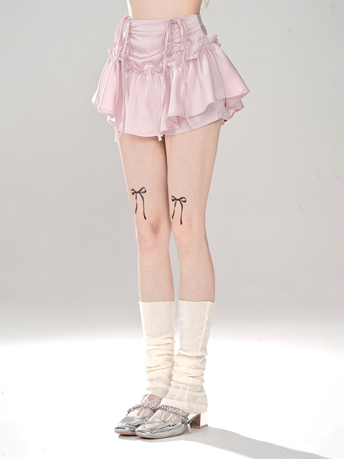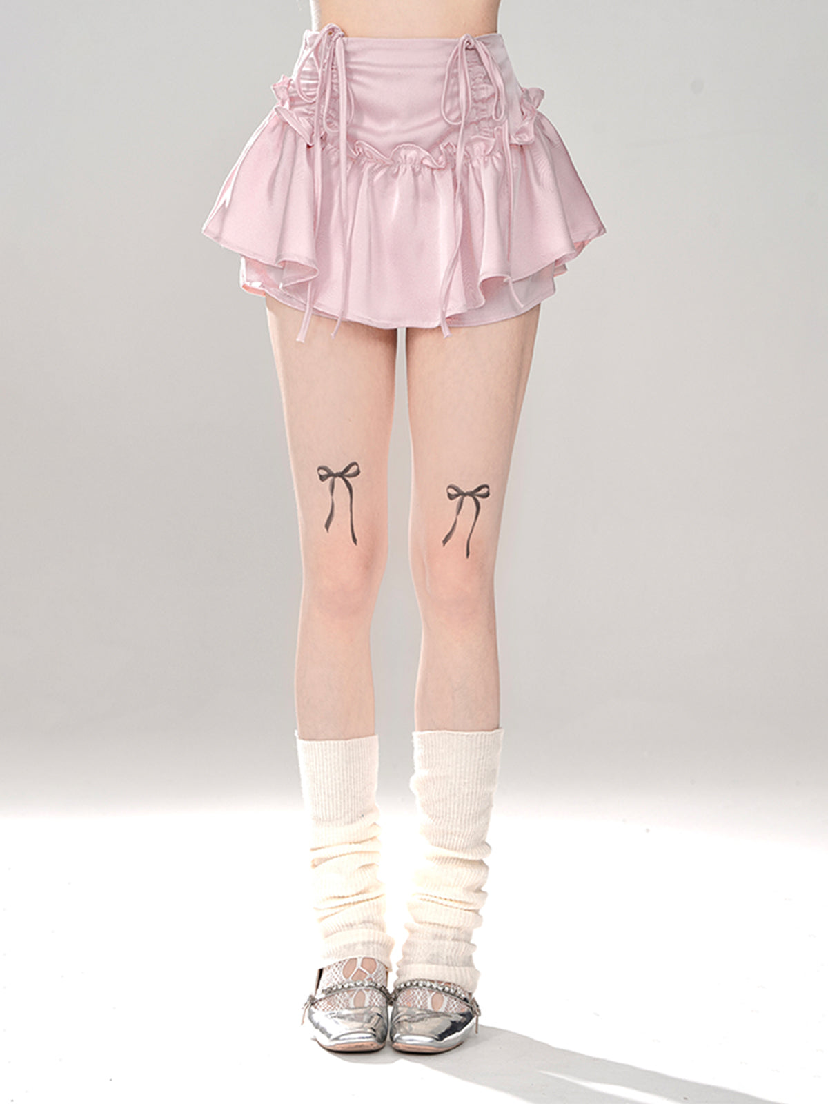 Young Eyes Coquette Swan Cream Pink Ruffle Short Skirt