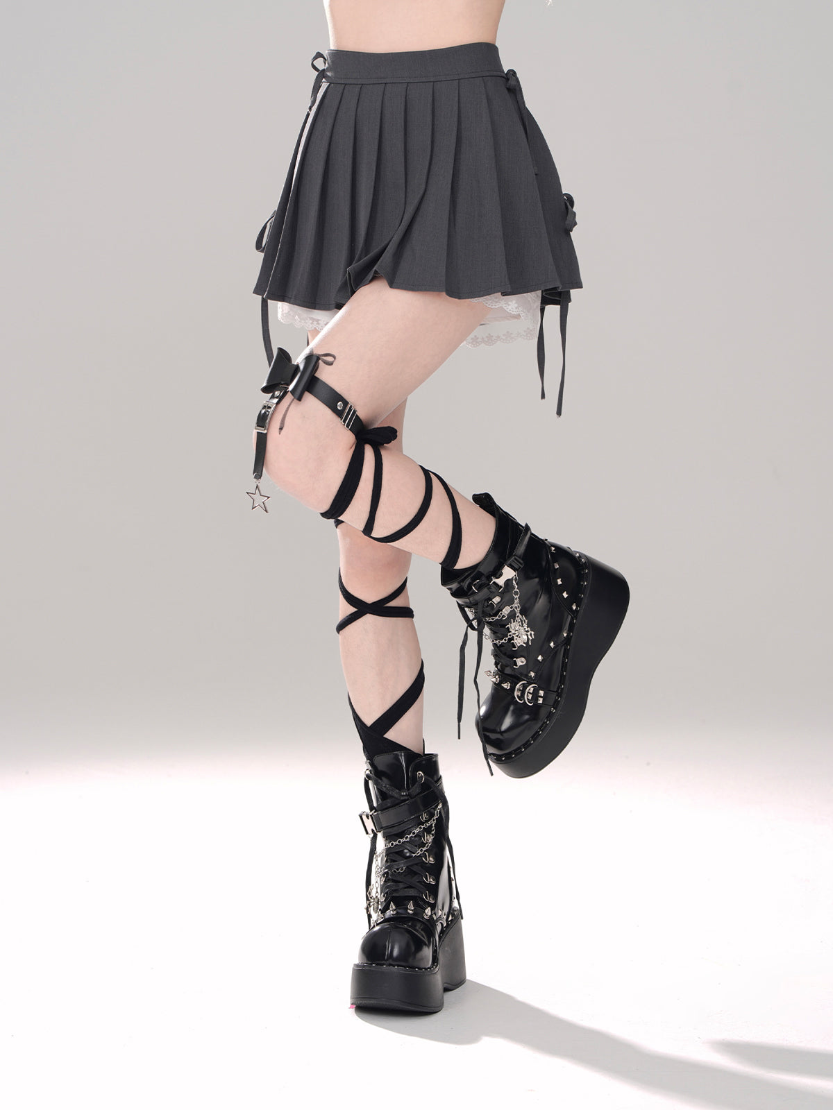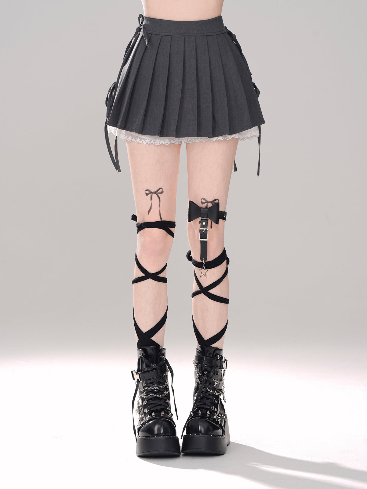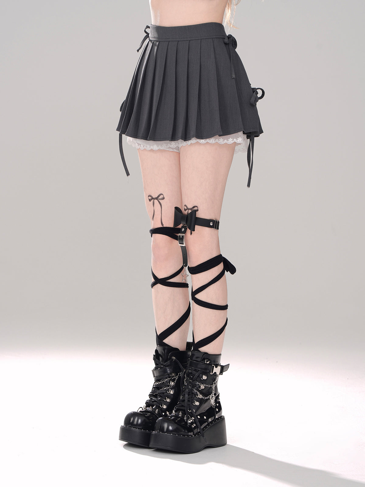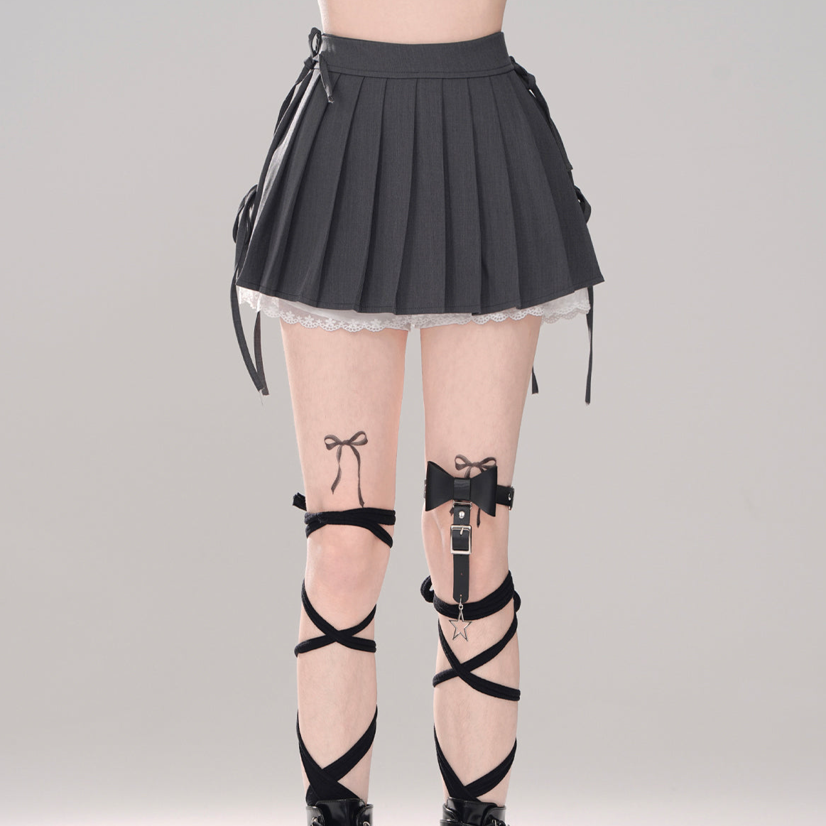 Young Eyes Gray & Floral Pleated Mini Skirt