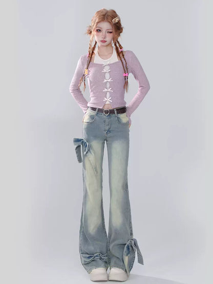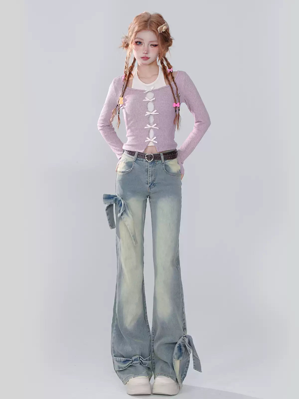 Young Eyes Twins Bow Black Blue Denim Jeans