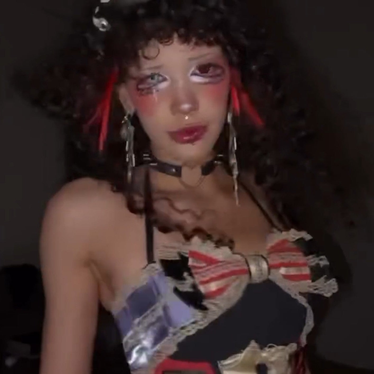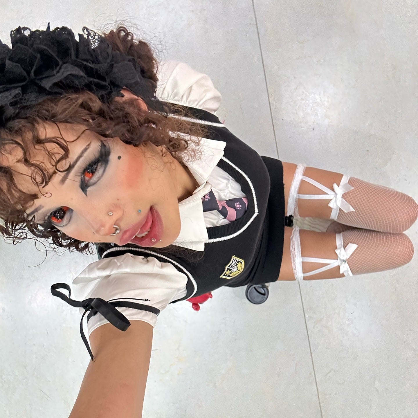 this bunny ribbon top and denim mini skirt from @sugarplumstorenvy have stolen my heart~ kawaii y2k dreams do come true! 🐰🎀