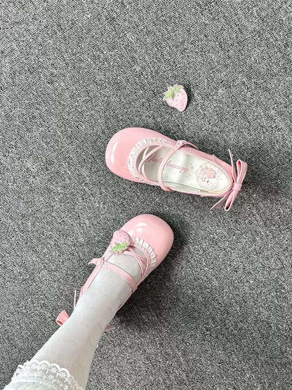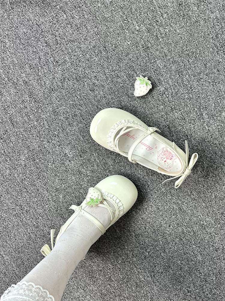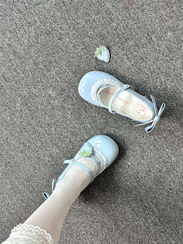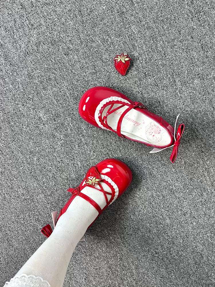 Abi Rabbit Little Strawberry Round Toe Low Heels Mary Jane Shoes