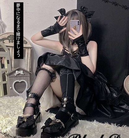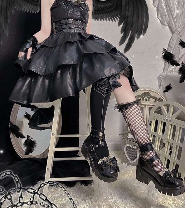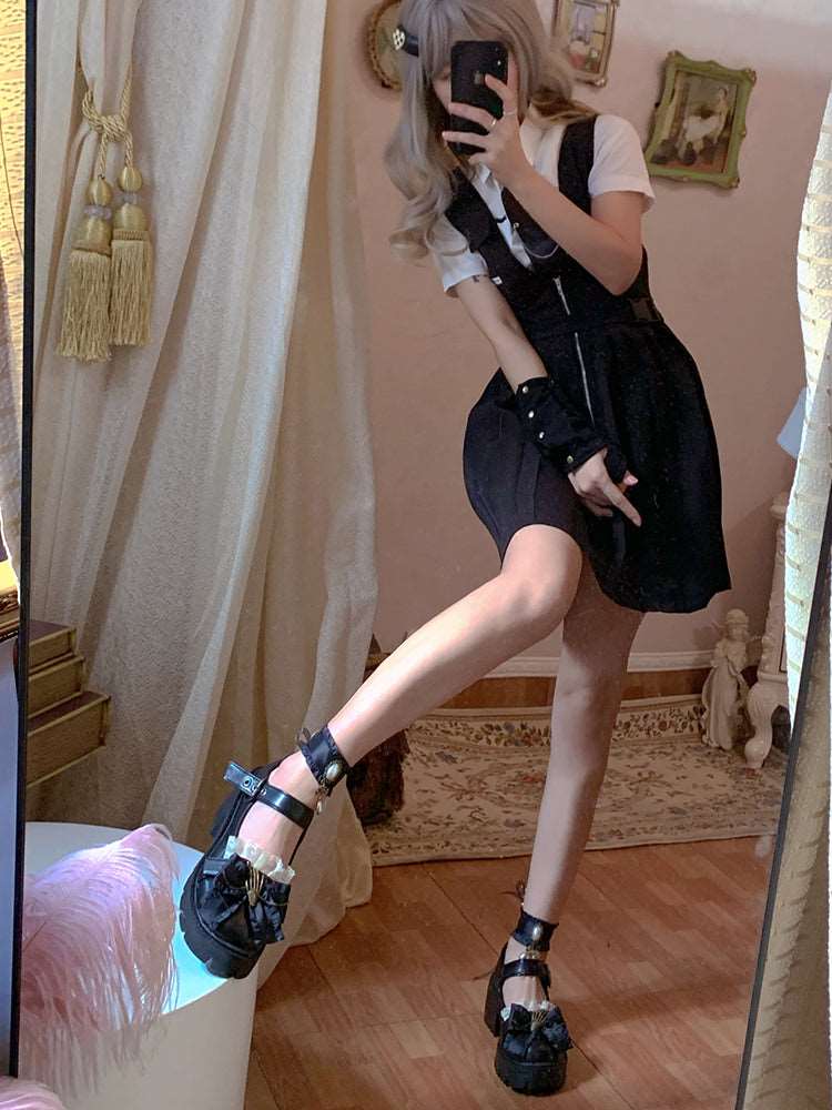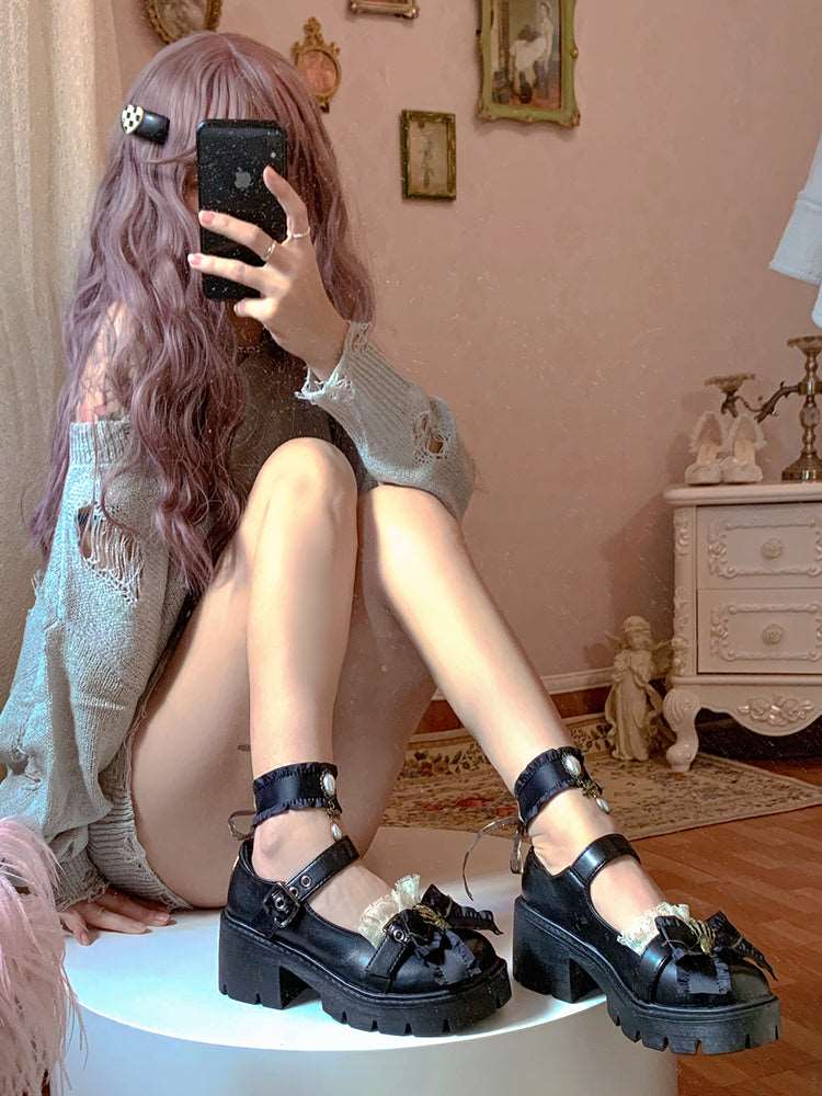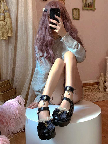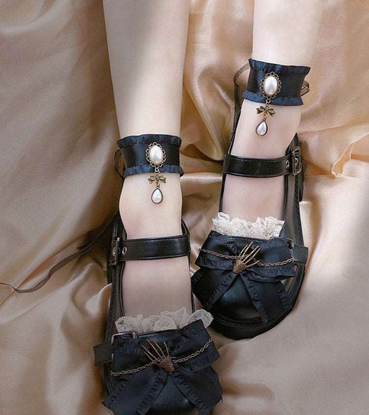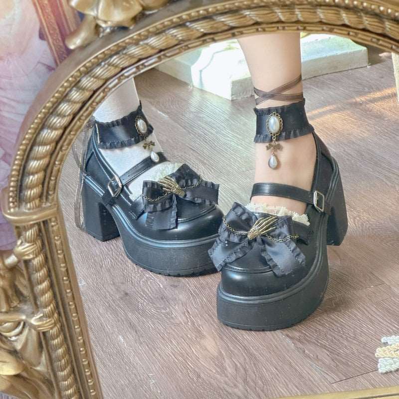 Pinky Black Dark Gothic Skeleton Hand Lolita Mary Jane Shoes