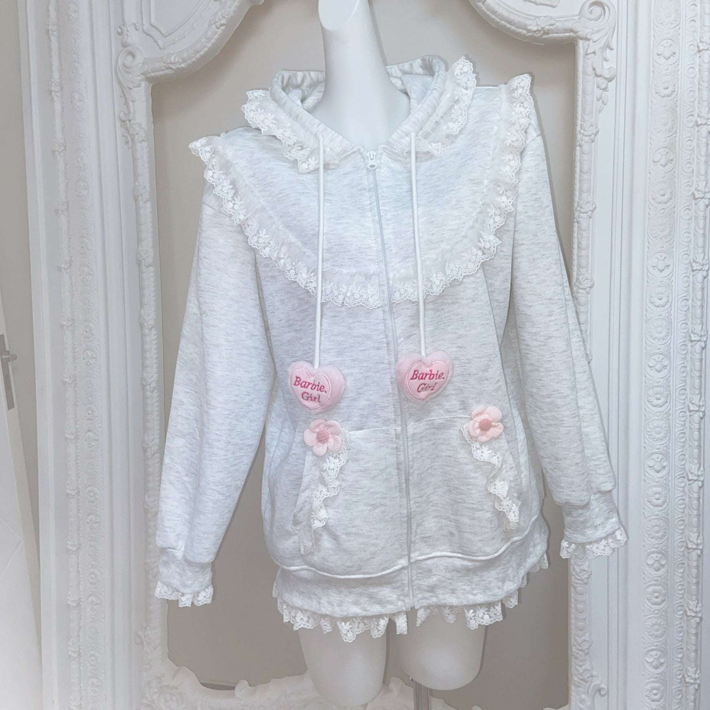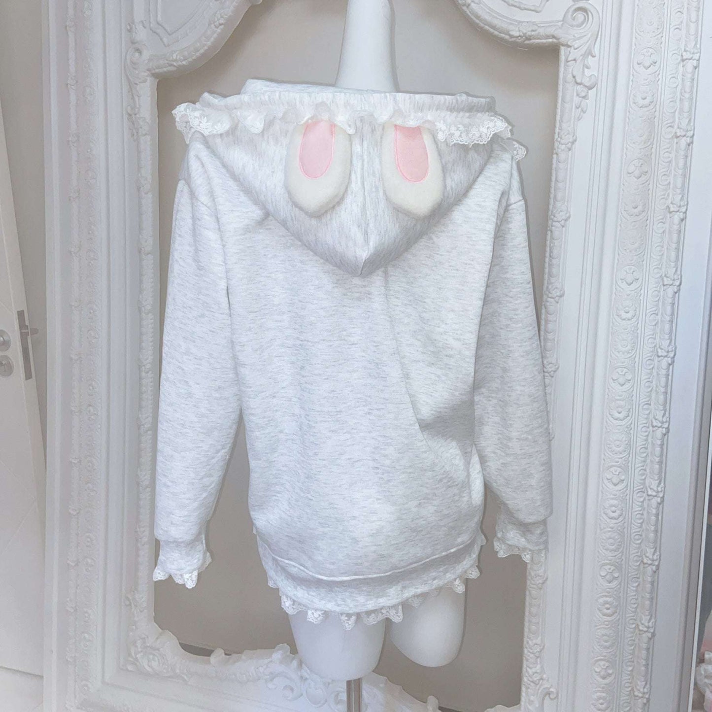 Candy Fairy Baby Girl White Ruffled Rabbit Ears Hoodie