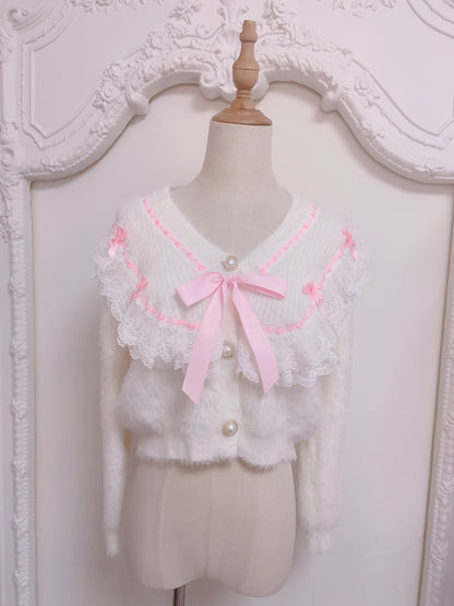 Candy Fairy Gentle Sailor Collar Pink Bow White Sweater