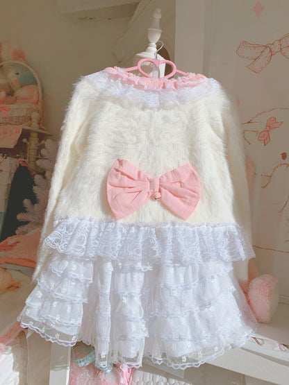 Candy Fairy Spring Lady Lace Knit White Pink Cardigan