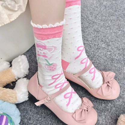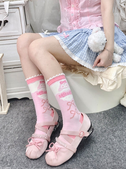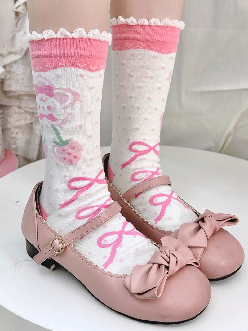 Chibi Strawberry Rabbit Pink White Lolita Socks