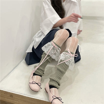 Coquette Lace Knit Pink White Gray Black Leg Warmers
