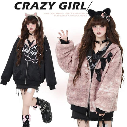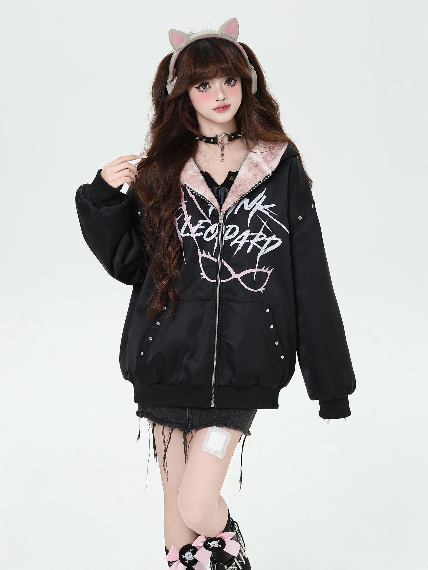 Crazy Girl Black Pink Leopard Reversible Jacket Hoodie