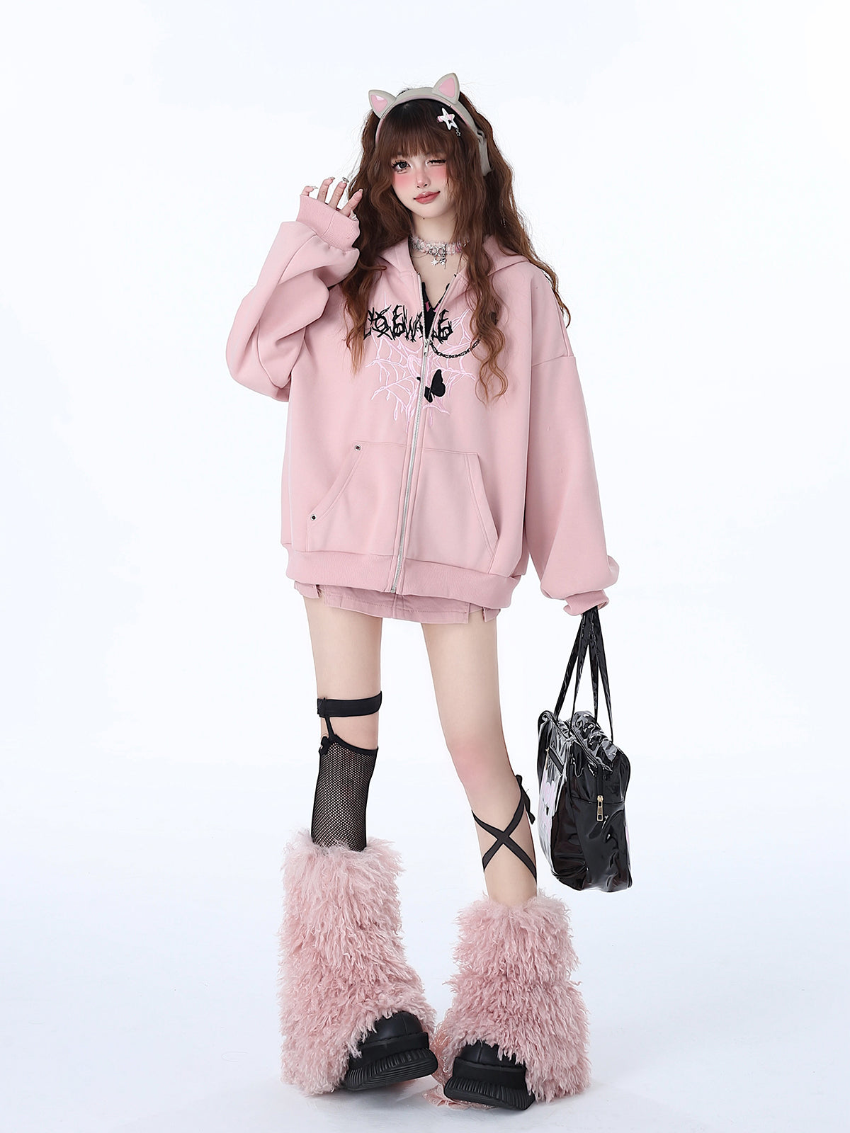 Crazy Girl Broken Butterfly Spider Pink Black Gray Jacket Hoodie
