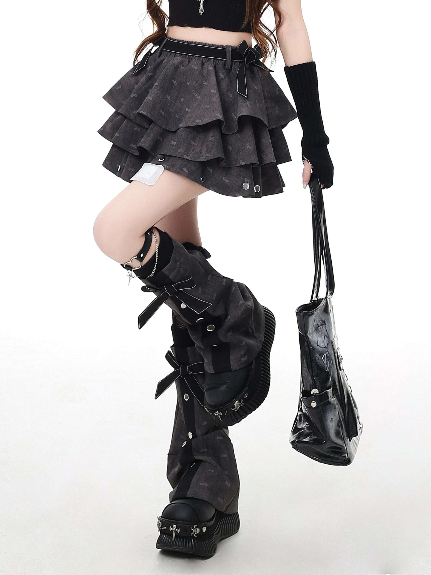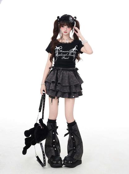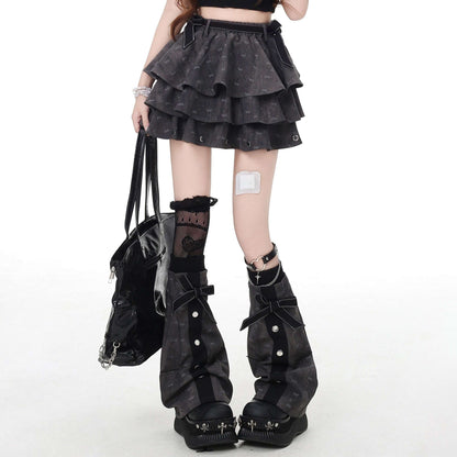 Crazy Girl Farewell Poem Gray Ruffle Elastic Skirt & Leg Warmers