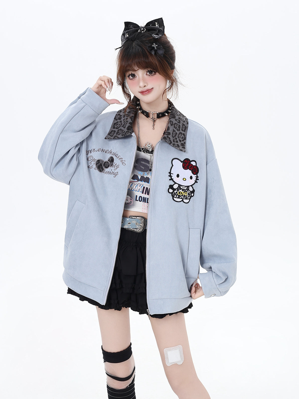 Crazy Girl Leopard Collar Pink Blue Kitty Baseball Jacket