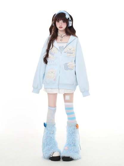 Crazy Girl Puppy Picnic Blue Black Hoodie Jacket