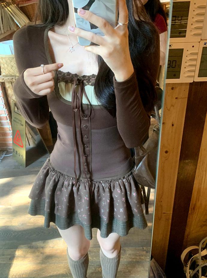 Creamy Cute Hazelnut Chocolate Brown Top & Coat & Skirt Three Piece Set