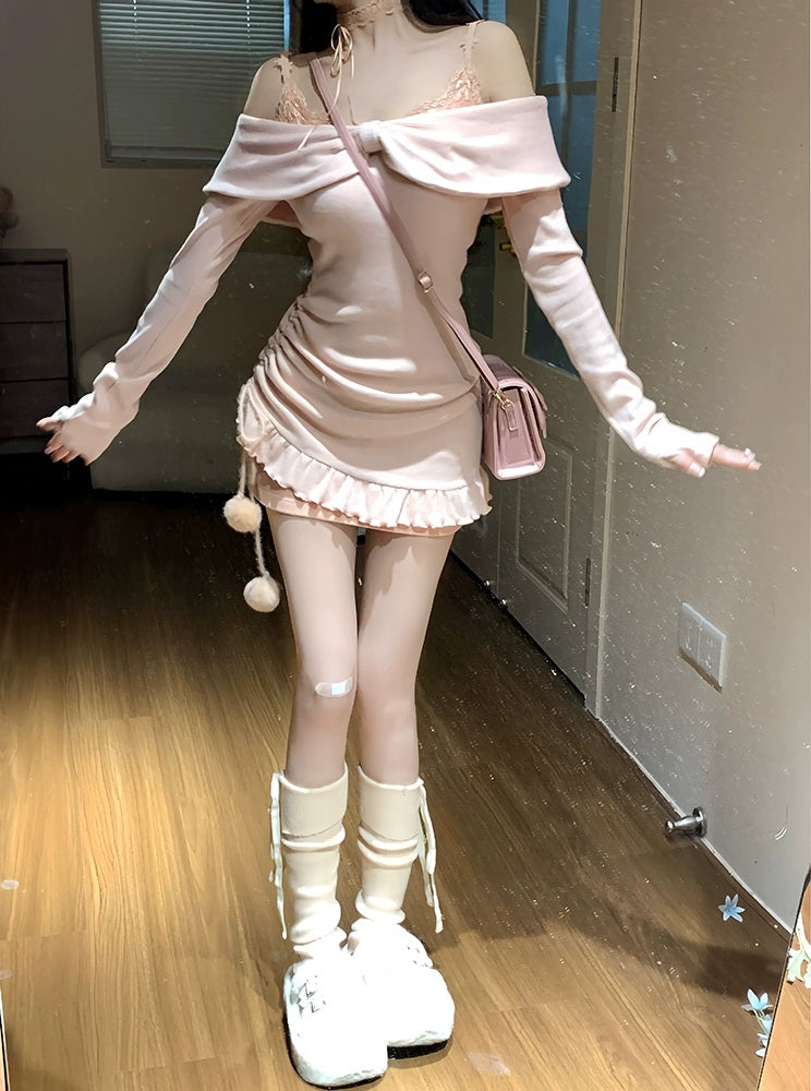 Creamy Cute Wild Cat Black Pink Sweater Top & Dress Two Piece Set