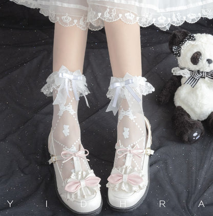 Dream Witch Gummy Bear and Toffee Rabbit Lolita Black White Lace Socks