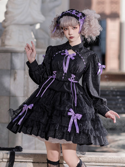 EGL Black Purple & White Pink Bow Lace Gothic Princess Dress
