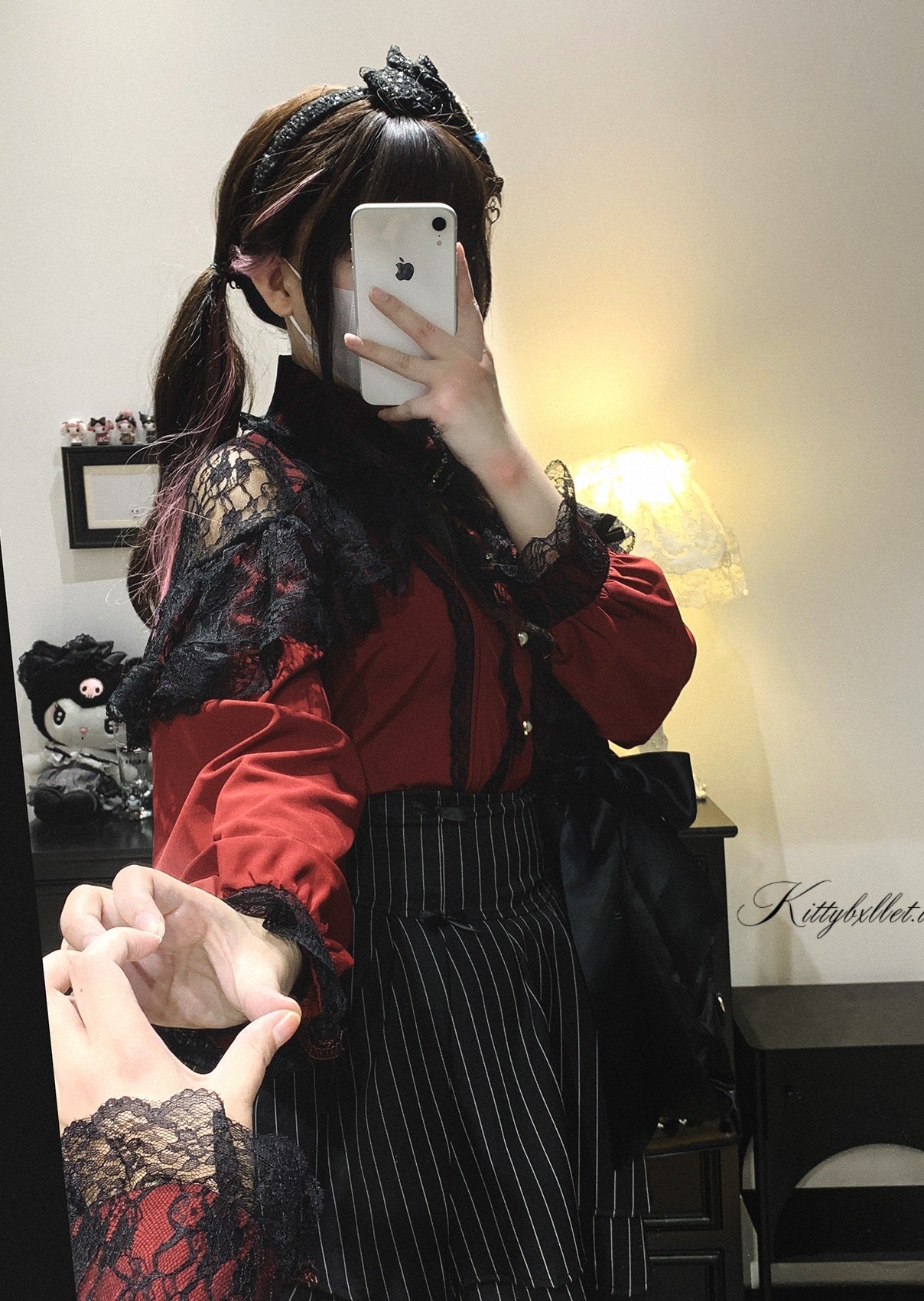 Kitten Bullet Love Ban Stripe & Lace Mini Skirt