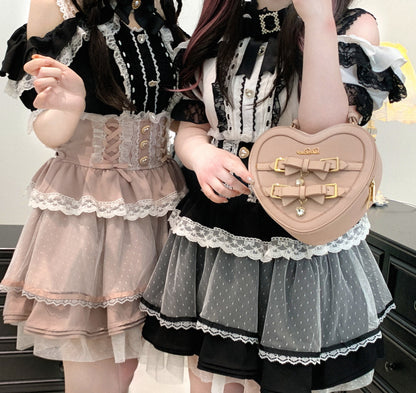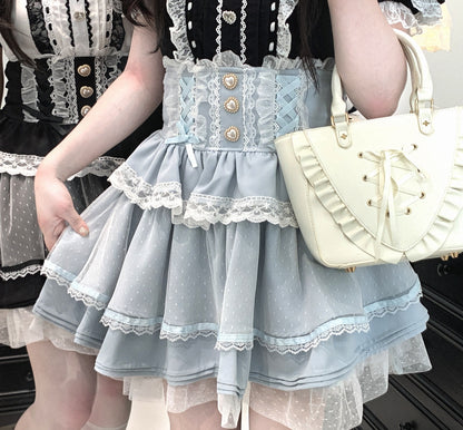 Embrace elegance with the Love Lilith Lace Tulle Skirt in Jirai Kei vibes. The multi-layered tulle skirt features heart-beaded buttons and adjustable back straps for a customizable fit. Soft, lightweight, and voluminous, this skirt offers a graceful, fairy-like silhouette perfect for layered looks. šŸ–¤