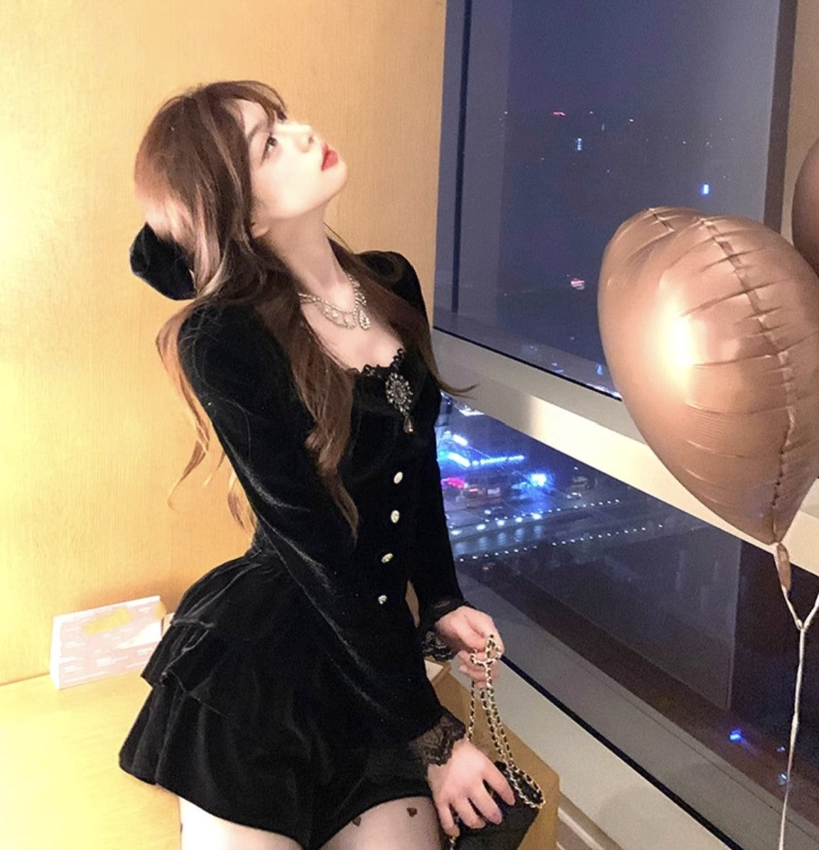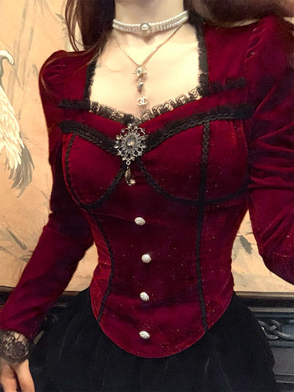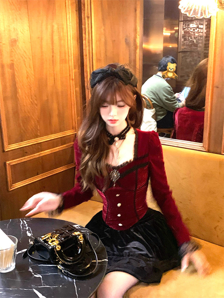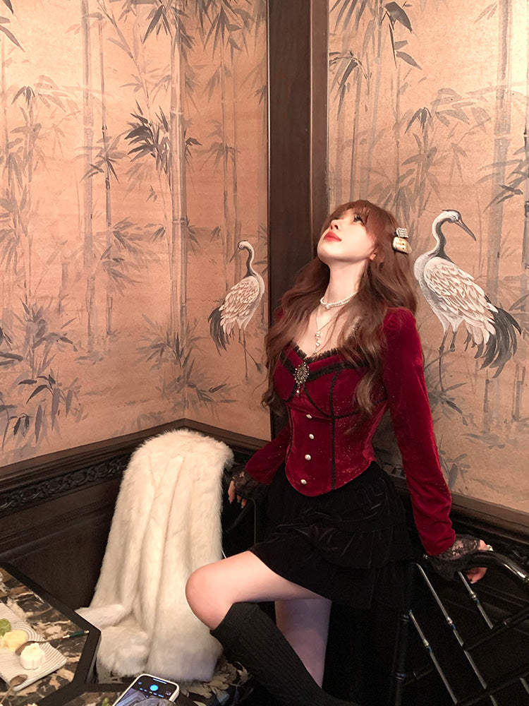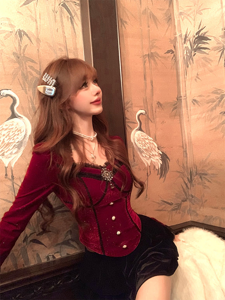 Lazy Girl Rouge Starlight Velvet Holiday Glitter Red & Black Top Shirt