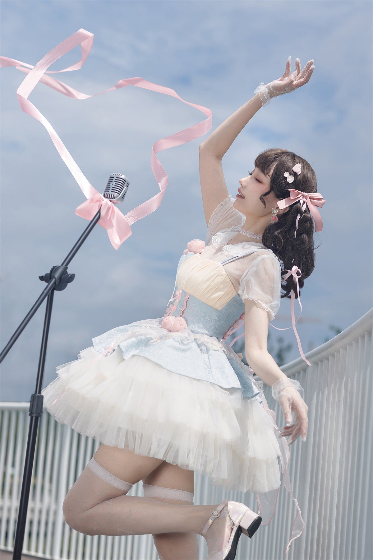 Step into a fairytale with the Lolita Rose Peach Blue Ruffled Princess Strap Dress. This charming jsk dress blends soft blue, cream, and white hues, topped with delicate pink rose accents for a sweet, whimsical look. Its ruffled straps and princess silhouette add playful elegance, perfect for days when you want to feel like royalty.