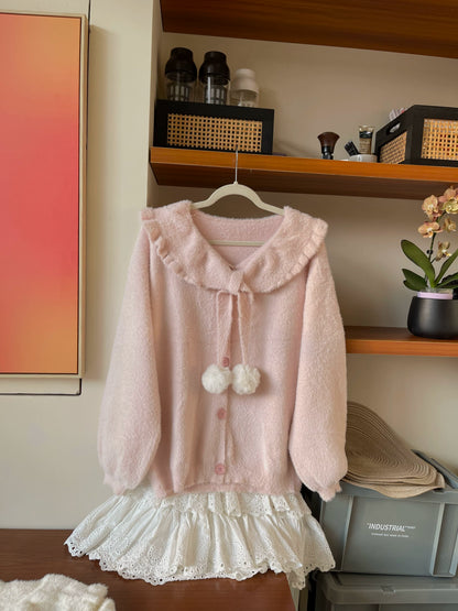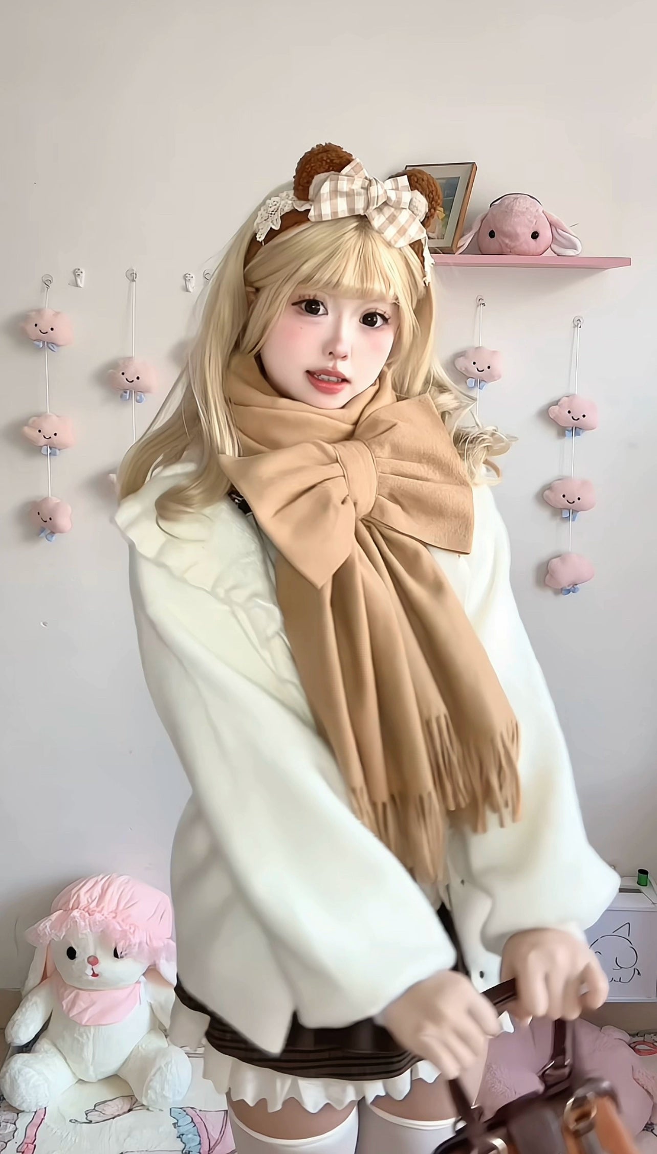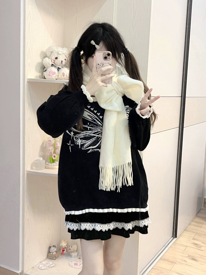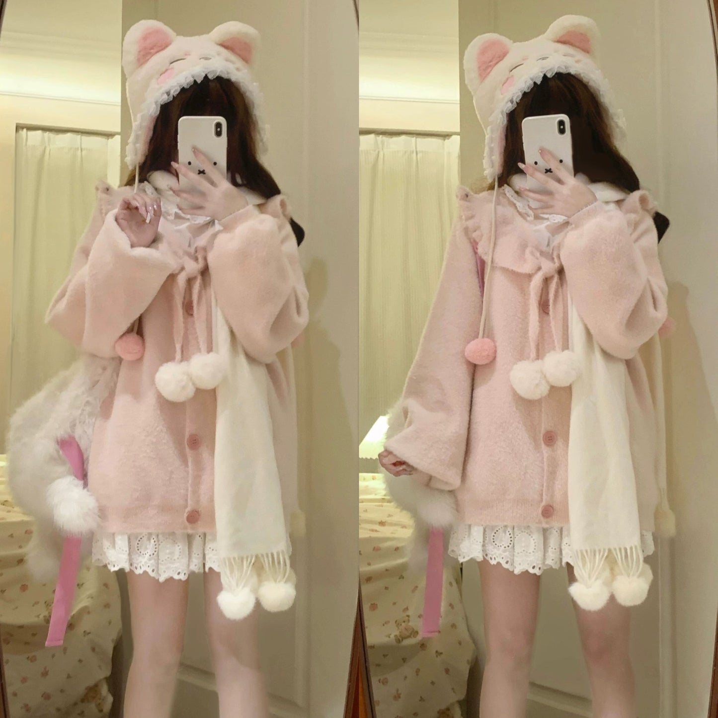 Luyu Soft White Pink Blue Knit Sweater & Skirt & Scarf Three Piece Set