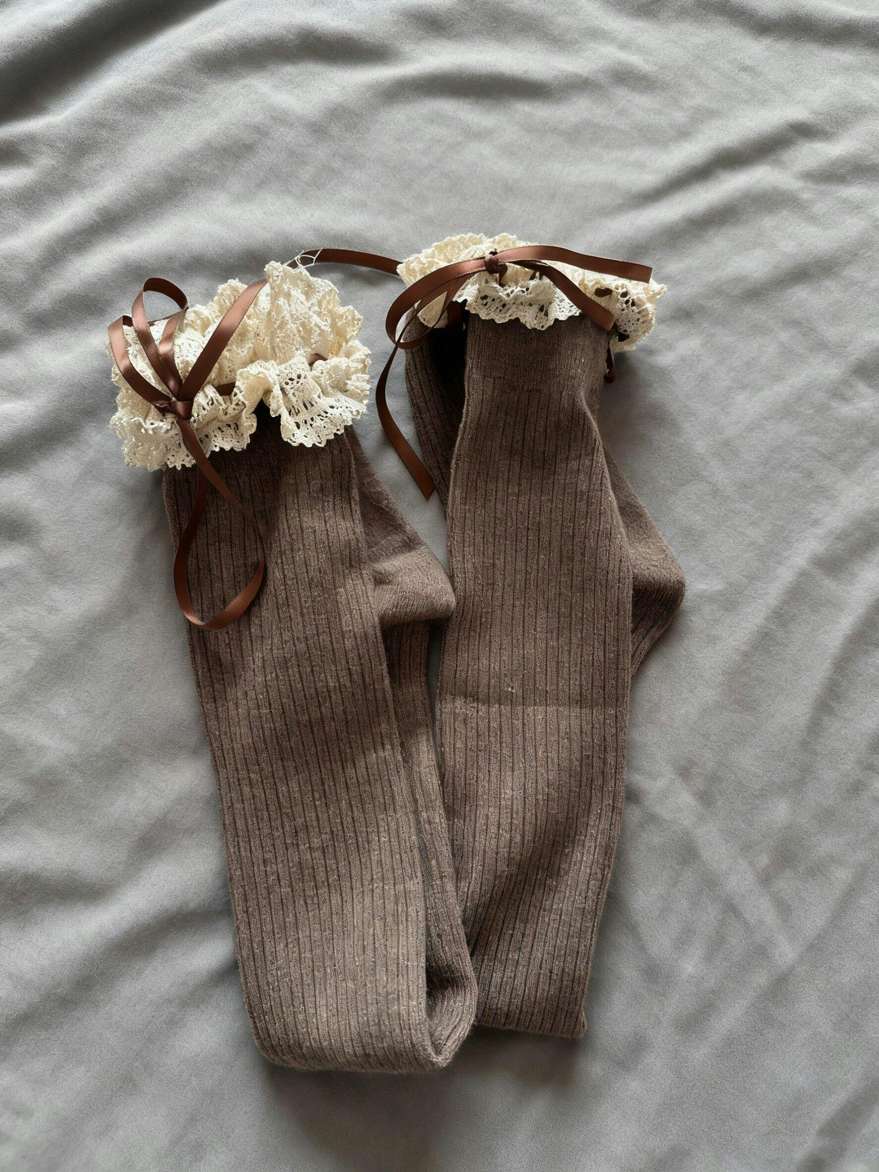 Maillard Fall Brown White Black Gray Over the Knee Socks