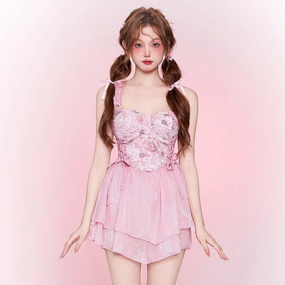 Masked Cat Pink Cat Floral One Piece Swimsuit