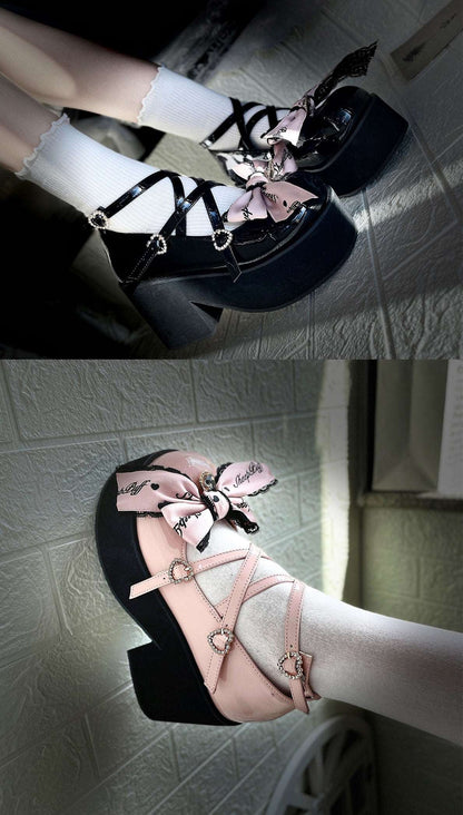 Puffy Sheep Black Pink EGL Sweet Thick Platform Shoes