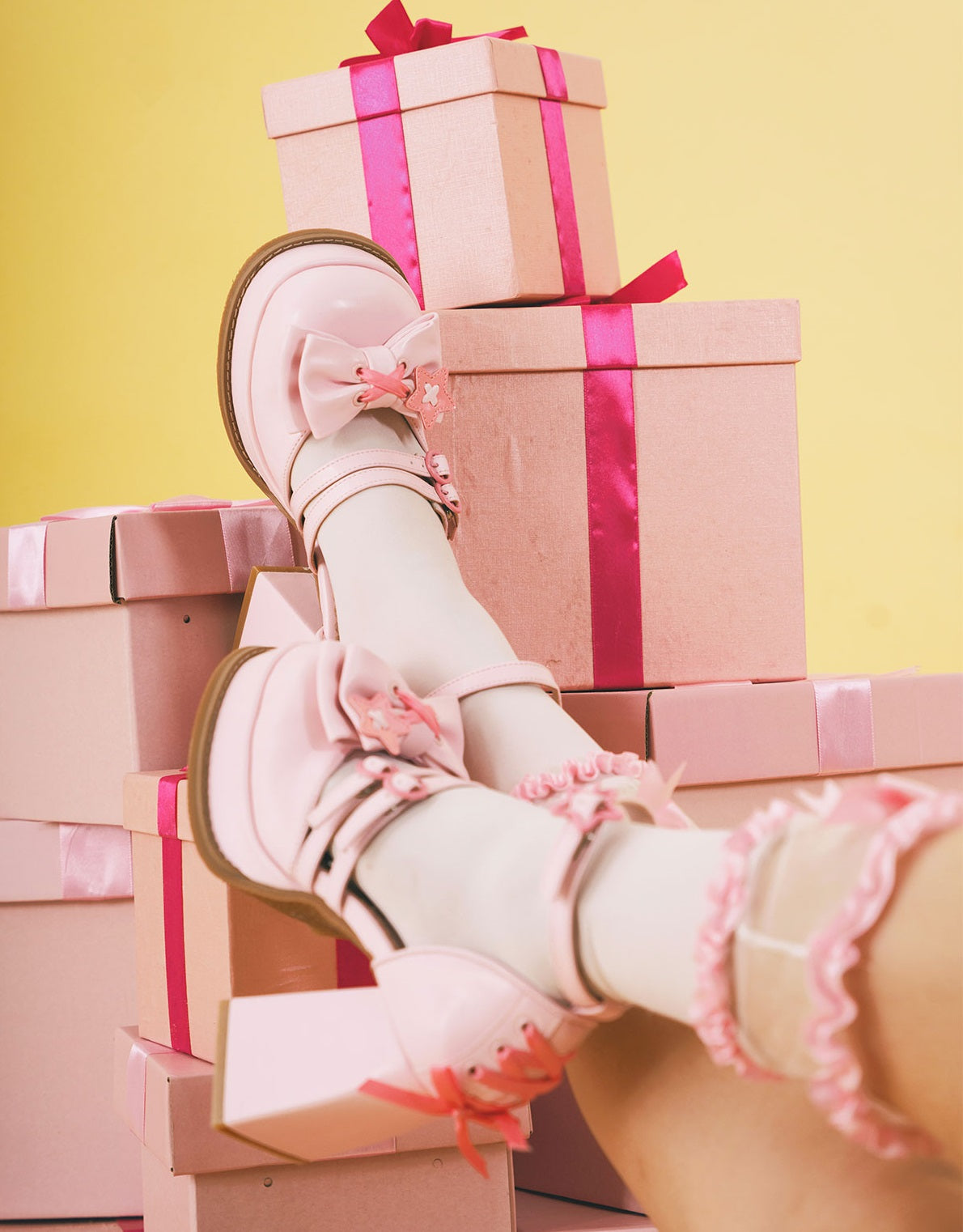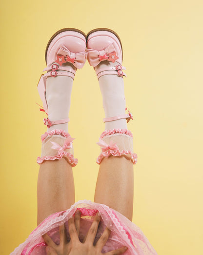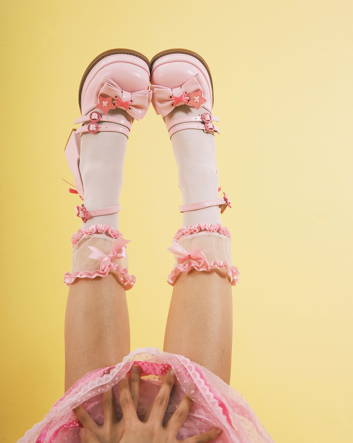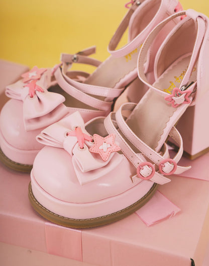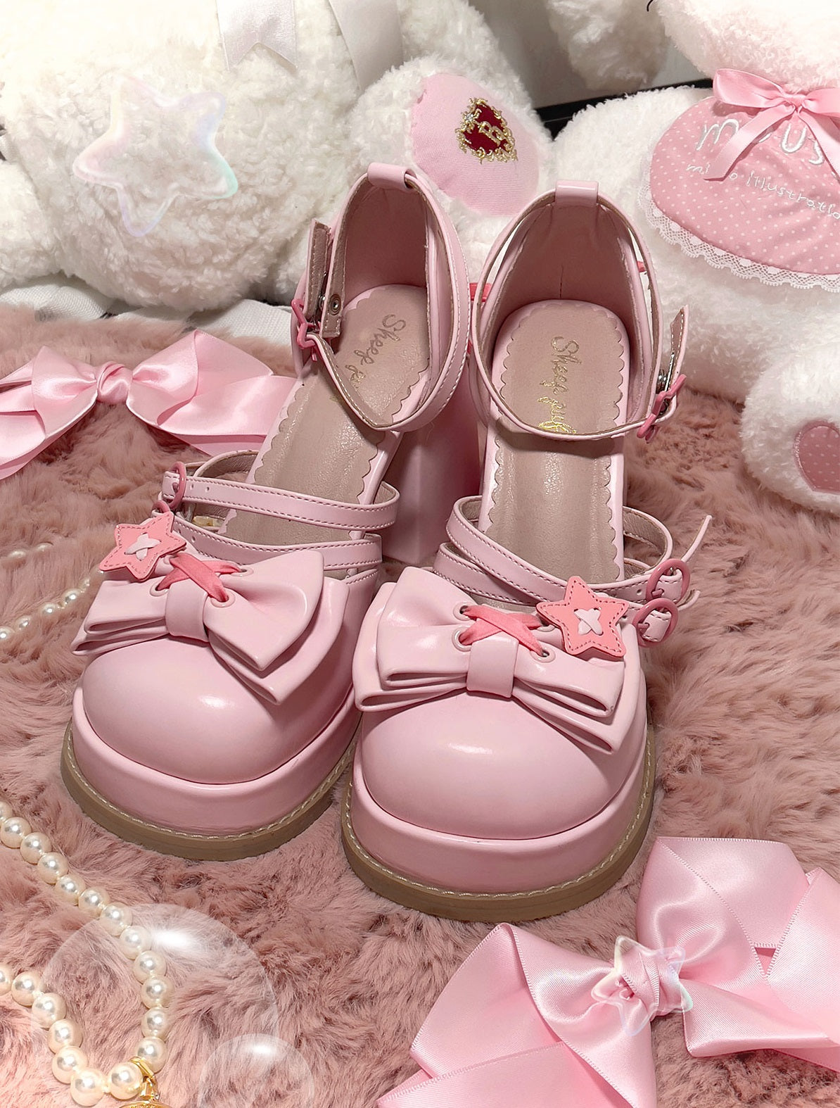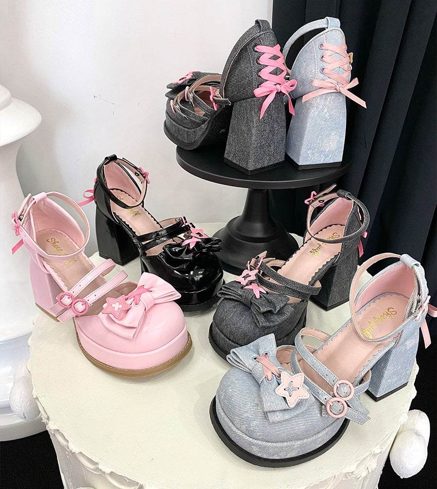 Puffy Sheep Stars Denim Pink Blue Gray Black High Heels Shoes