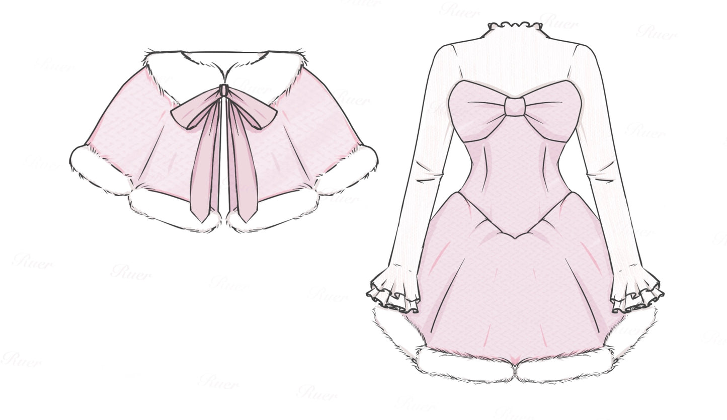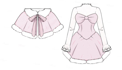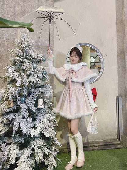 Ruellia Fairytale Princess Pink Long Sleeve Dress & Cape Two Piece Set