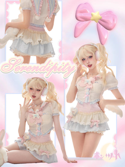 Serendipity Anime Magical Girl Cosplay Dream Maker Seifuku Shirt Top & Skirt Two Piece Set