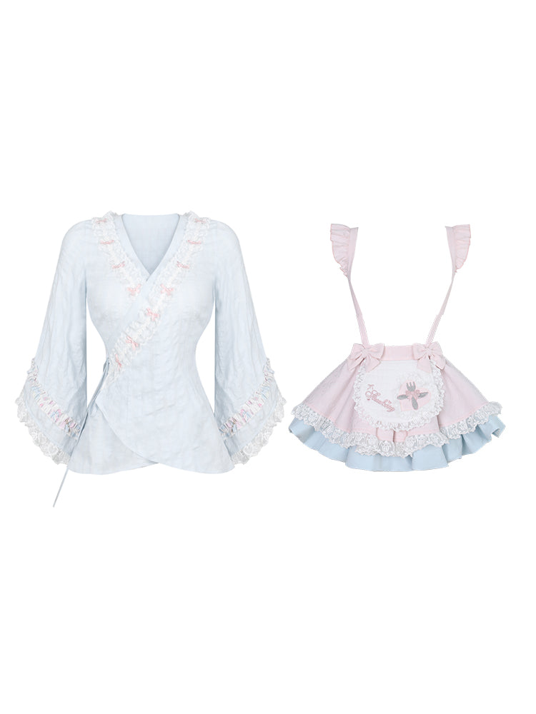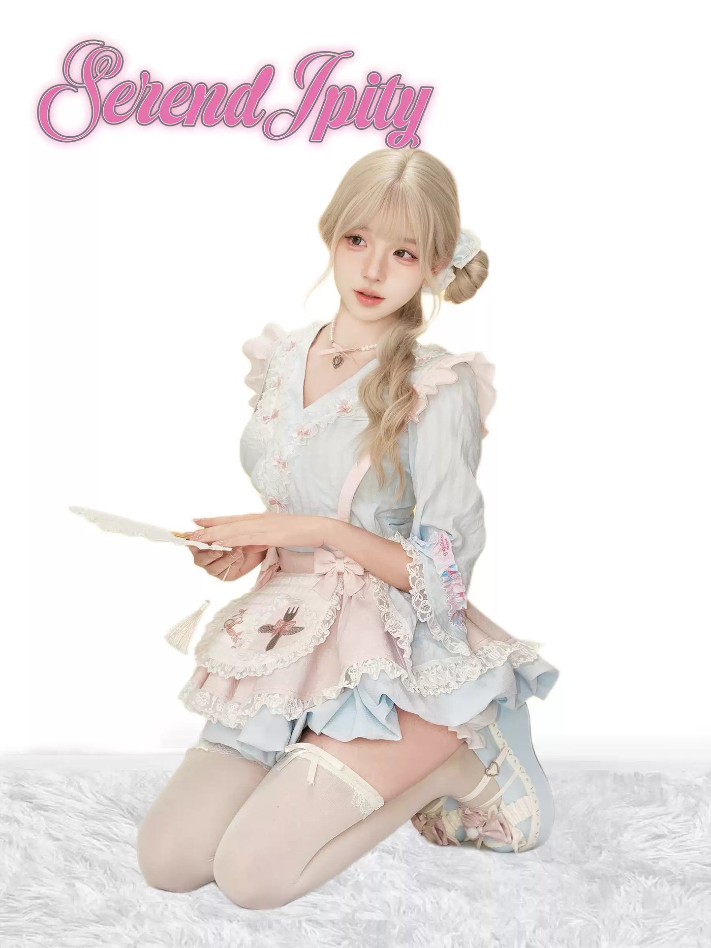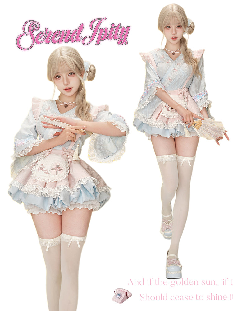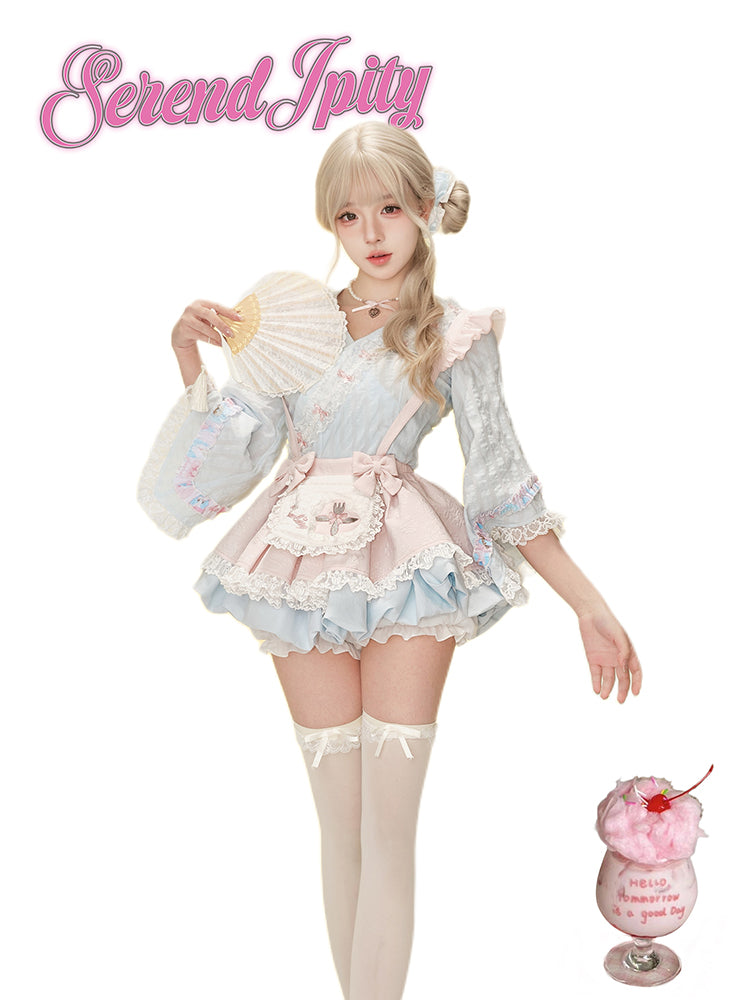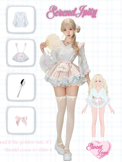 Serendipity Dessert Series Blue Cherry Kimono Top & Skirt Two Piece Set
