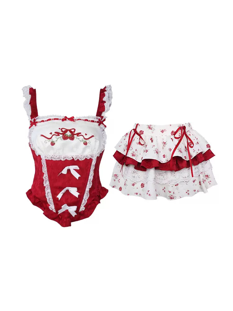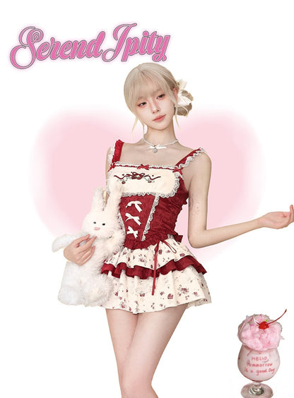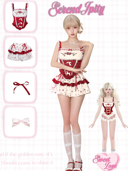 Serendipity Rose Ball Strawberry Red Camisole Top & Skirt Two Piece Set