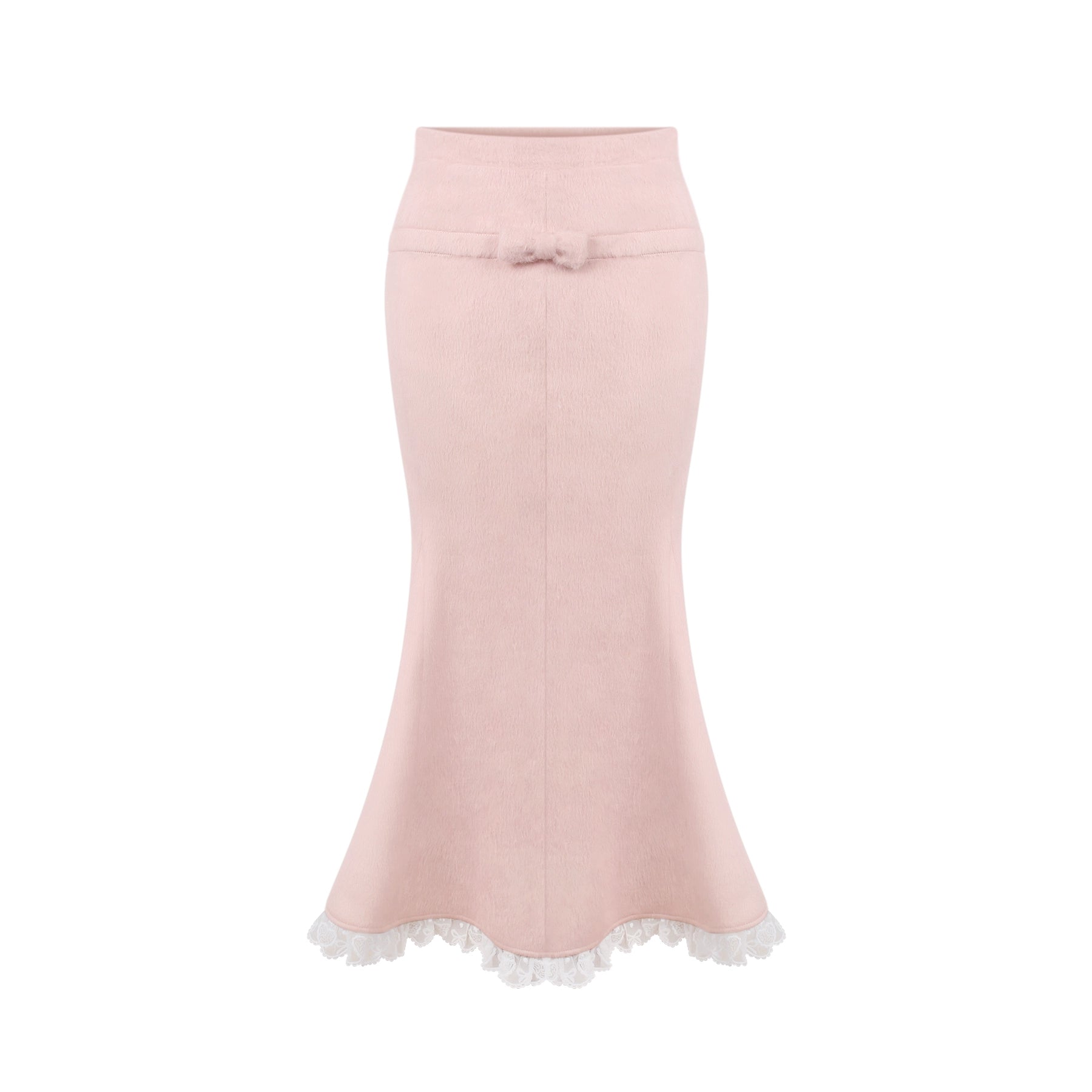 Step into winter with understated sophistication in this dreamy three-piece collection. The delicate ivory sweater pairs perfectly with a sumptuous pink coat, layered over a graceful mermaid wrap skirt for that coveted refined aesthetic.