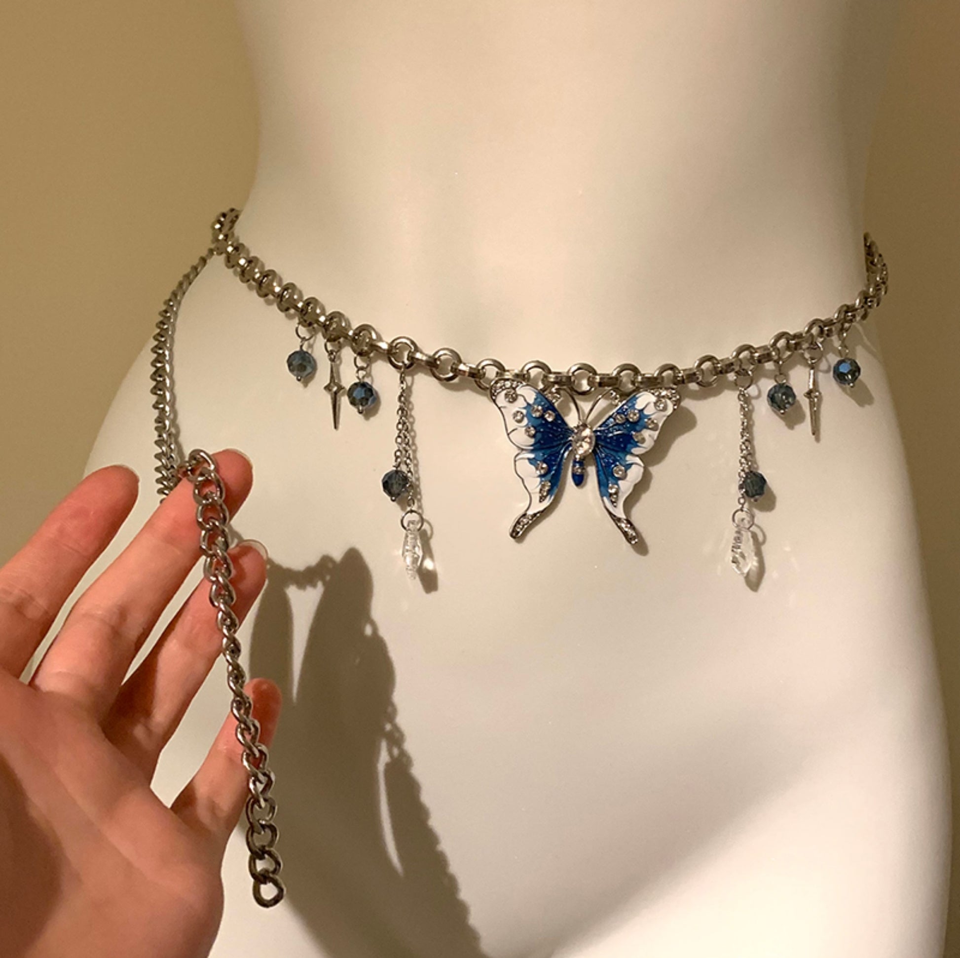 Silver Cross Pearl & Butterfly Beads Belly Chain Accessories