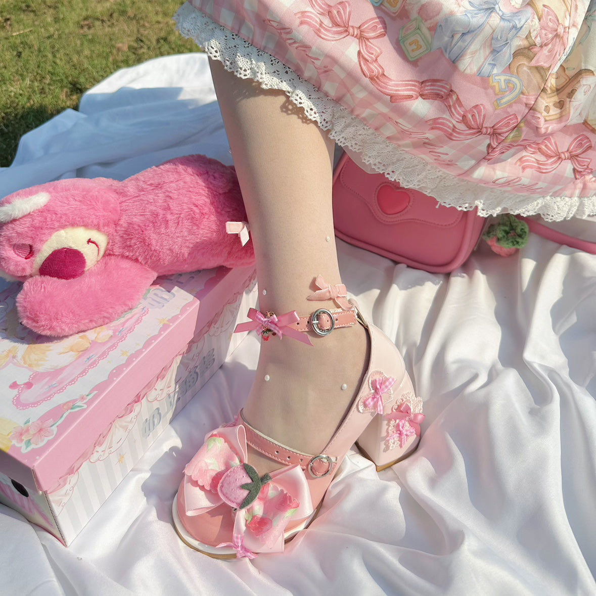 Indulge in the sweetness of our Strawberry Berry Lolita Pink Mary Jane High Heels Shoes. These luxurious shoes feature a charming strawberry design. With their high heels and Mary Jane style, they will elevate your look and make you feel like a princess.