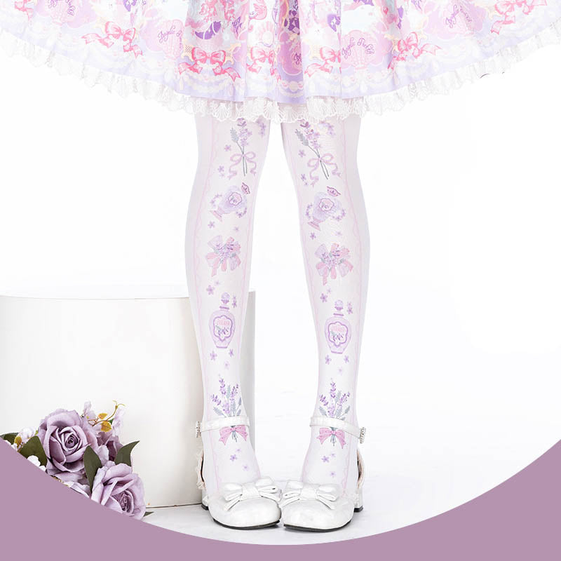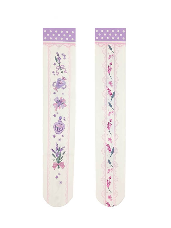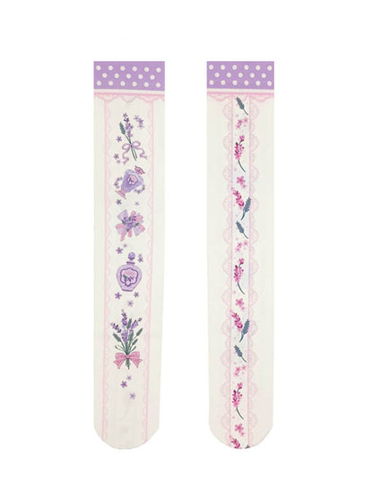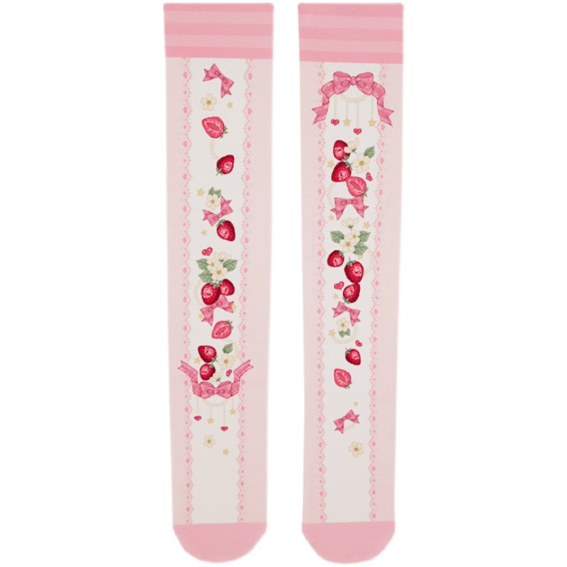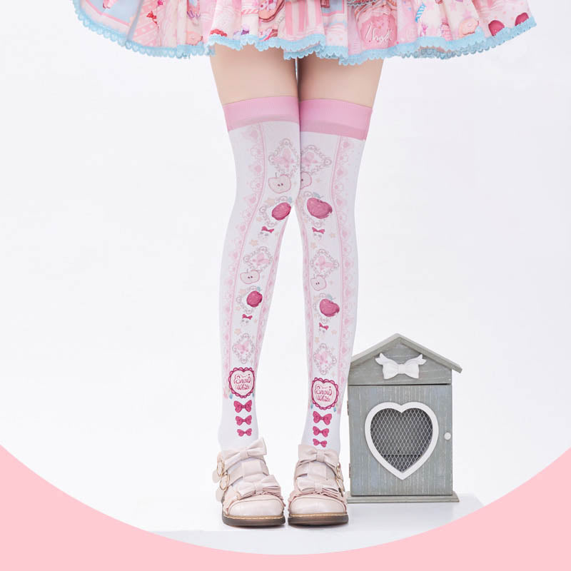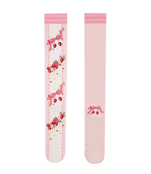 Strawberry Fairy Tale Pink Purple Blue Lolita Velvet Over the Knee Stockings