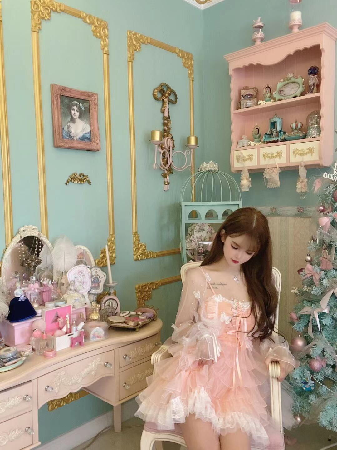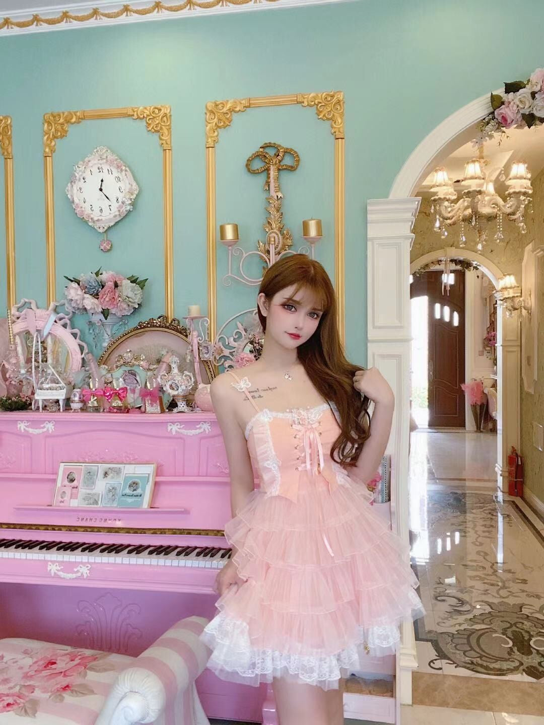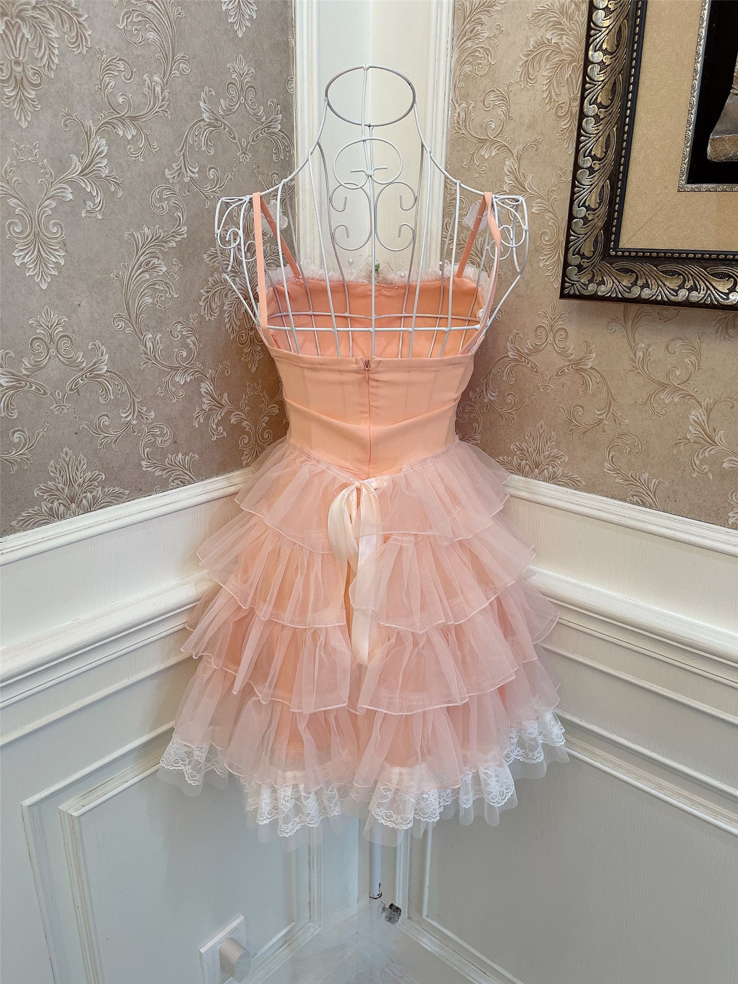 Sweetheart Princess Fairy Strap Cake Peach Pink Dress