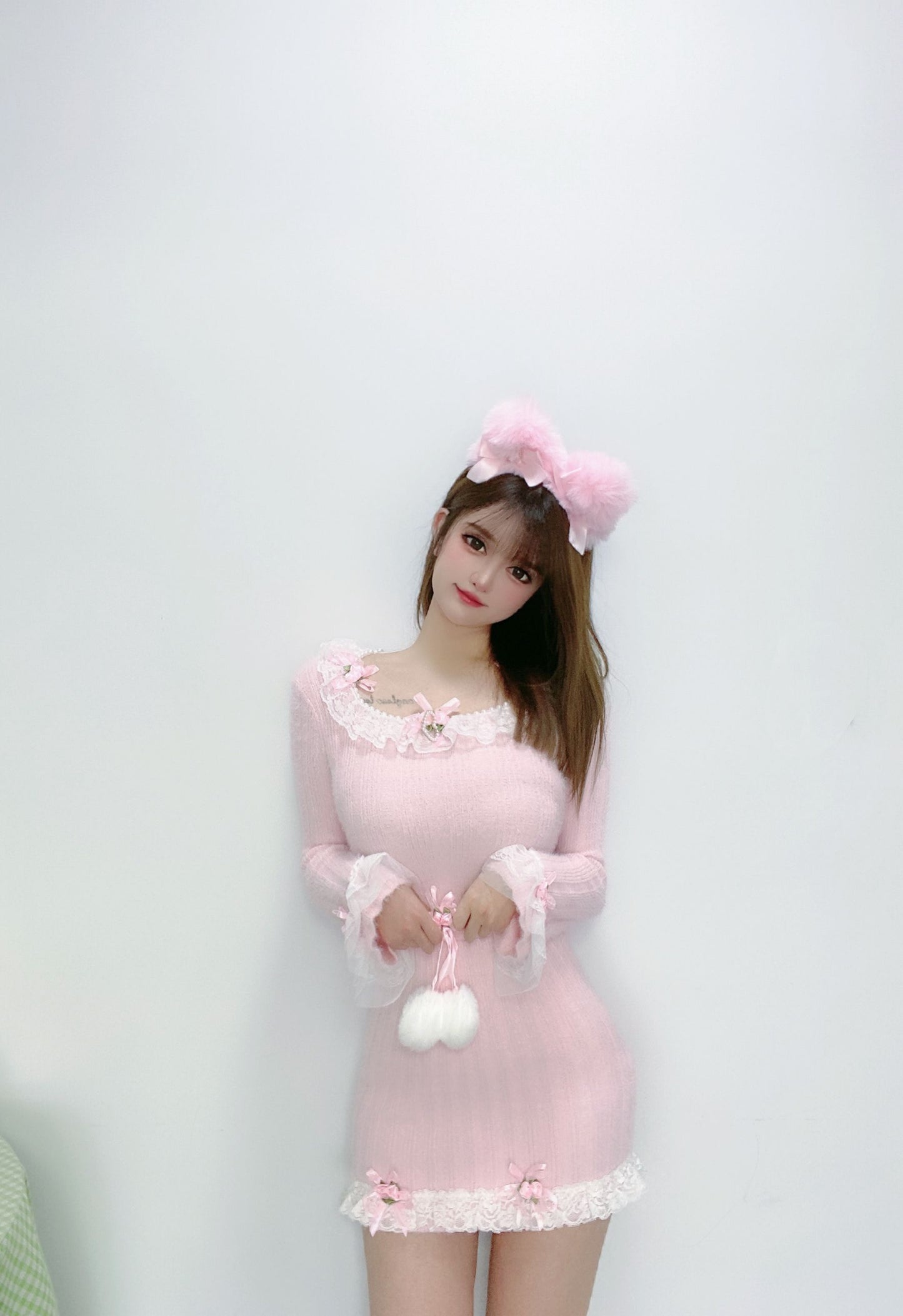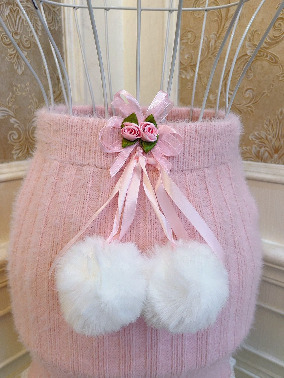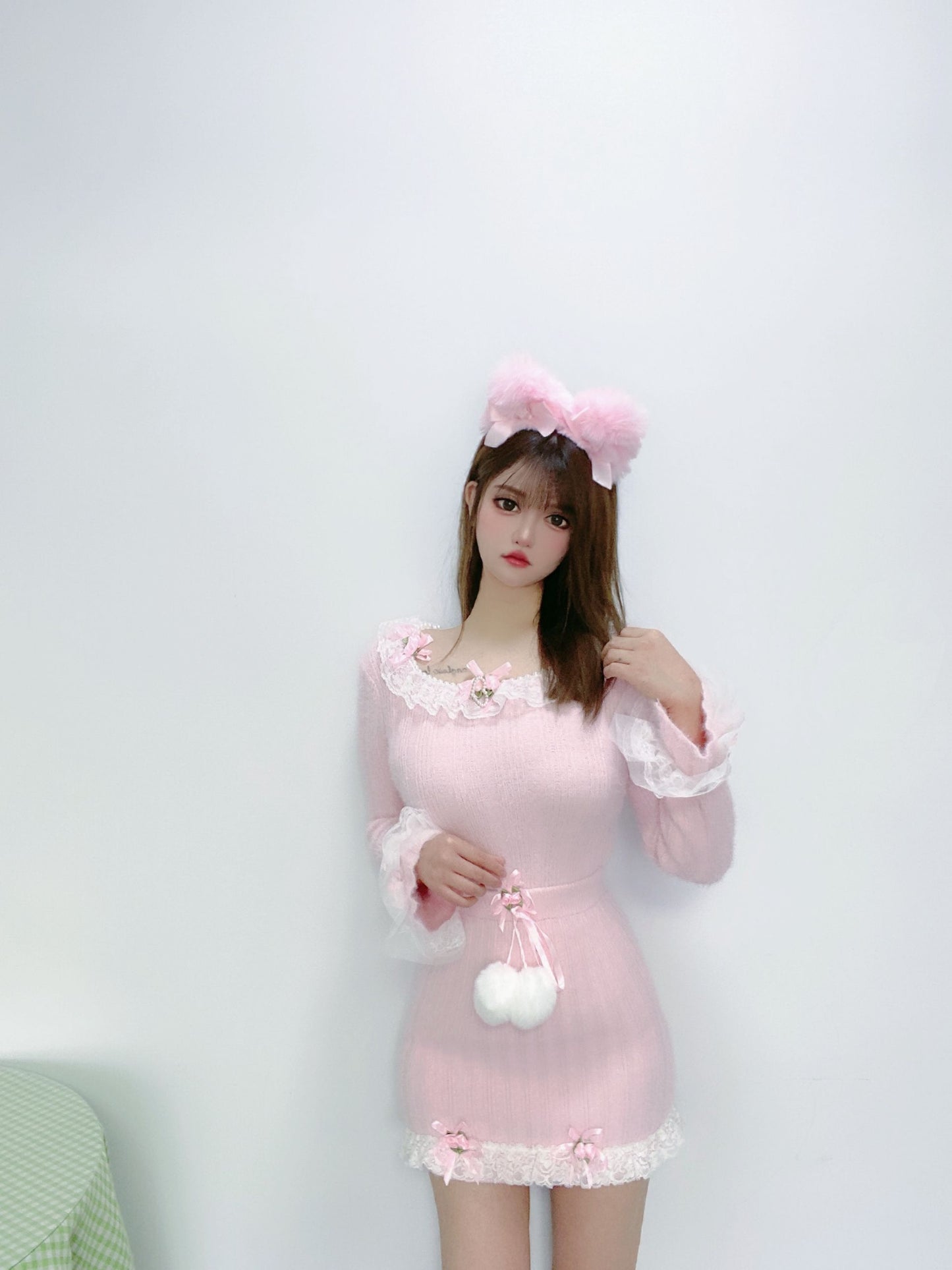 Sweetheart Princess Rose Lace Pink Knit Sweater & Mini Skirt Two Piece Set