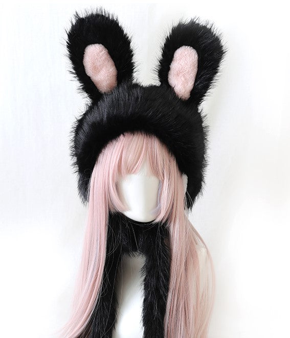 The plush rabbit ears can be shaped into various forms, with soft silk inside. Suitable for individuals with a head circumference of 54-59CM, the attached straps can also function as a scarf to provide additional warmth.