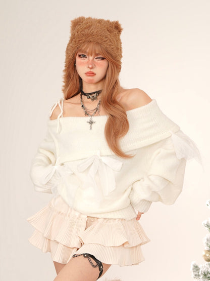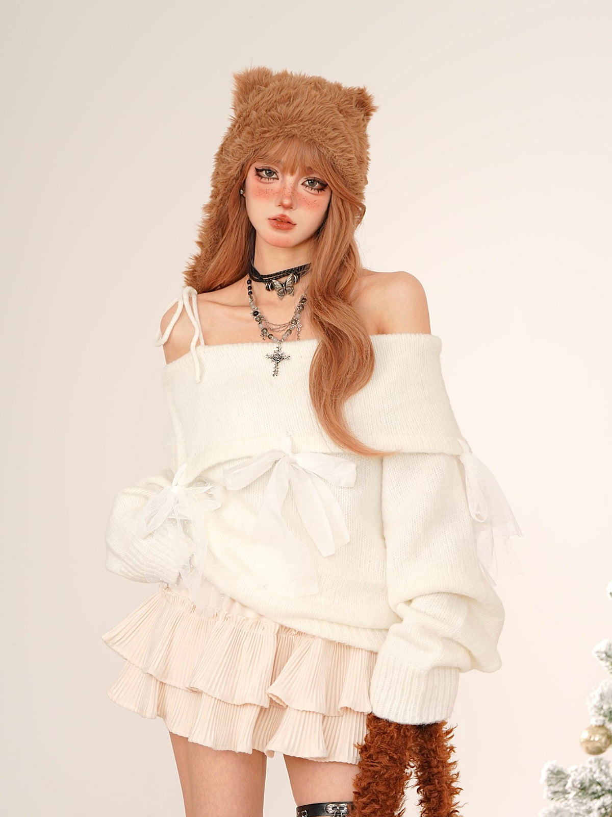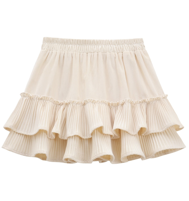 Young Eyes Autumn Velvet White Cream Black Layered Ruffled Short Skirt