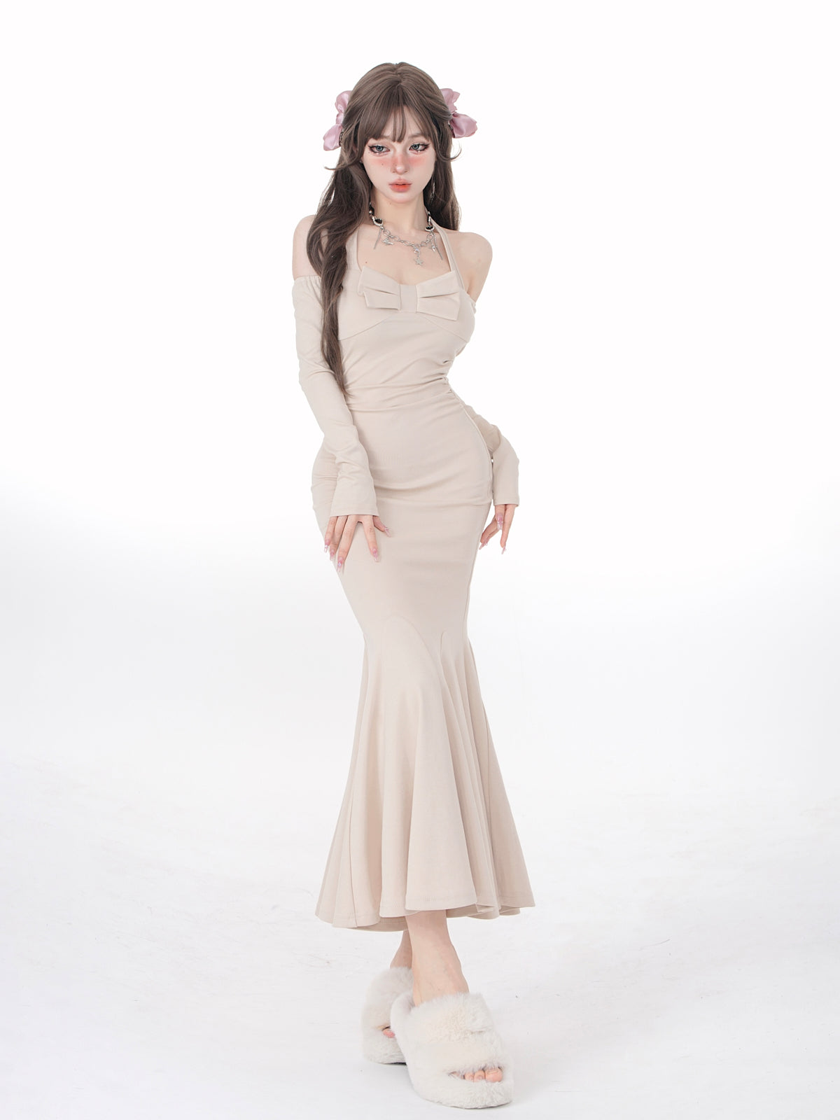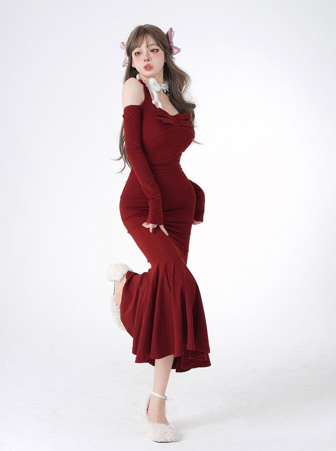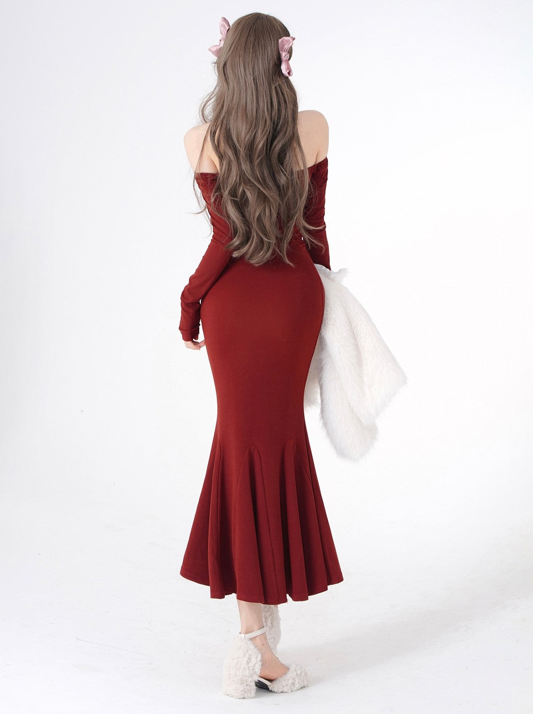 Young Eyes Christmas Holiday Festive Winter Sexy Red Burgundy Halter Neck Bodycon Midi Dress