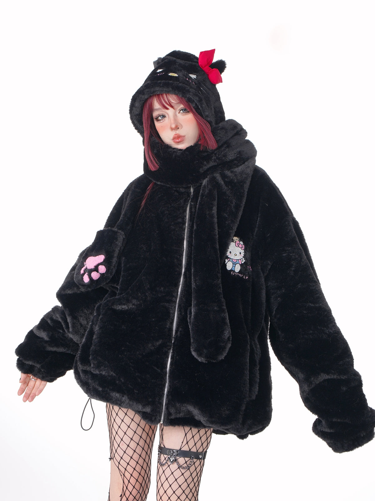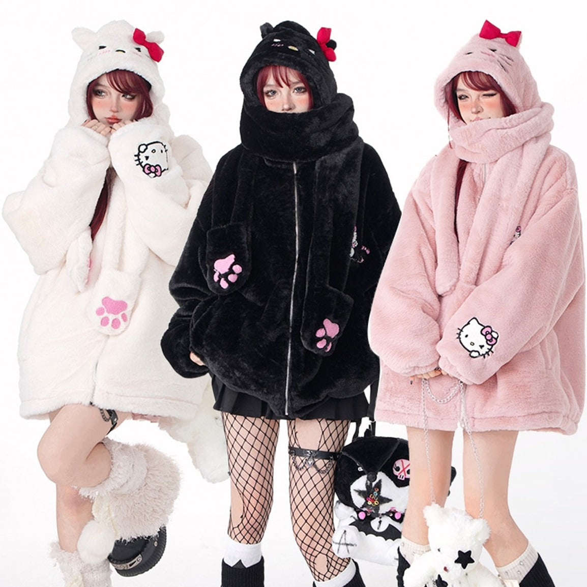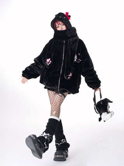 Young Eyes Kitty Cartoon Fall Winter Detachable Hat Plush Jacket