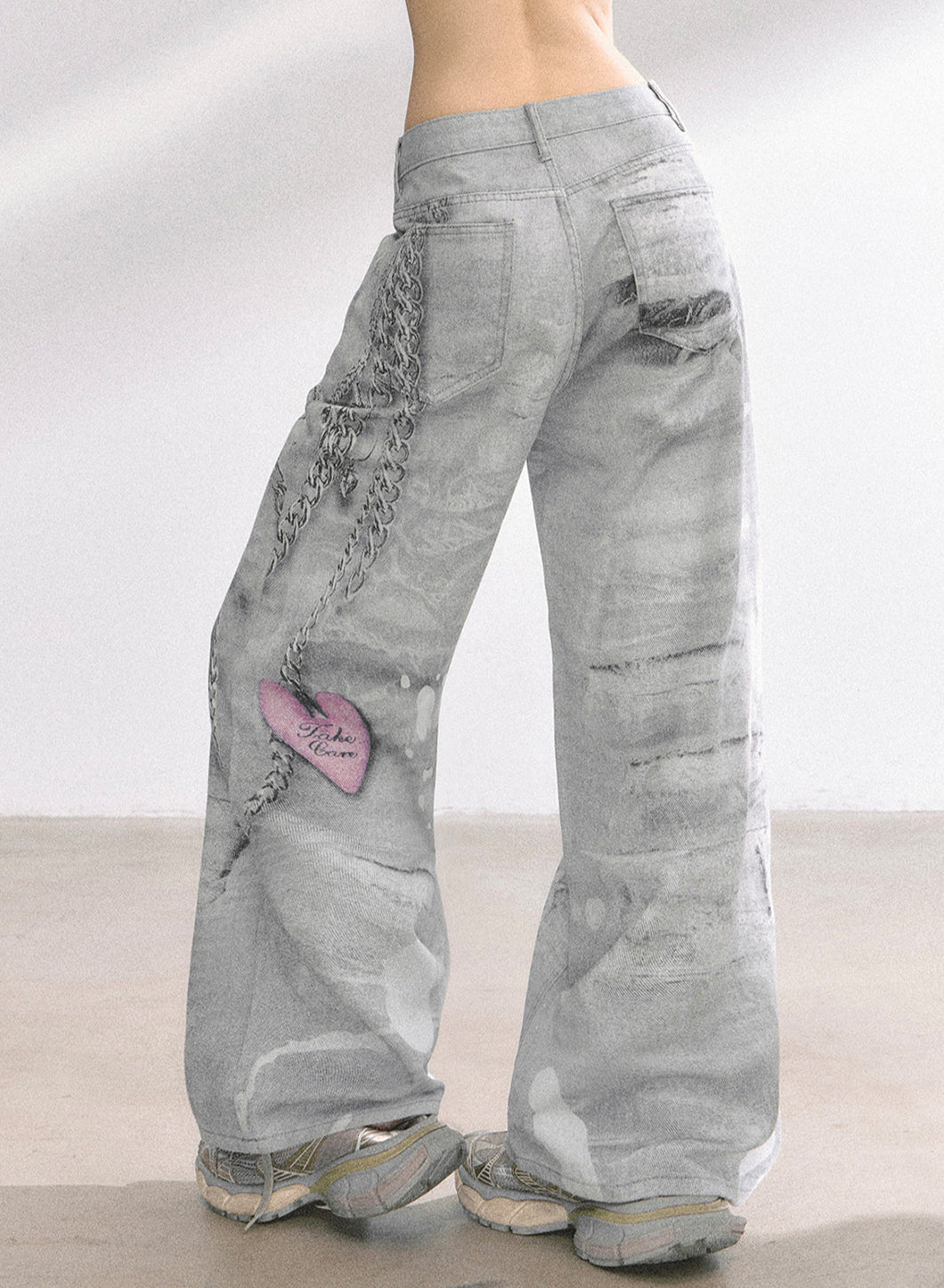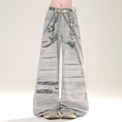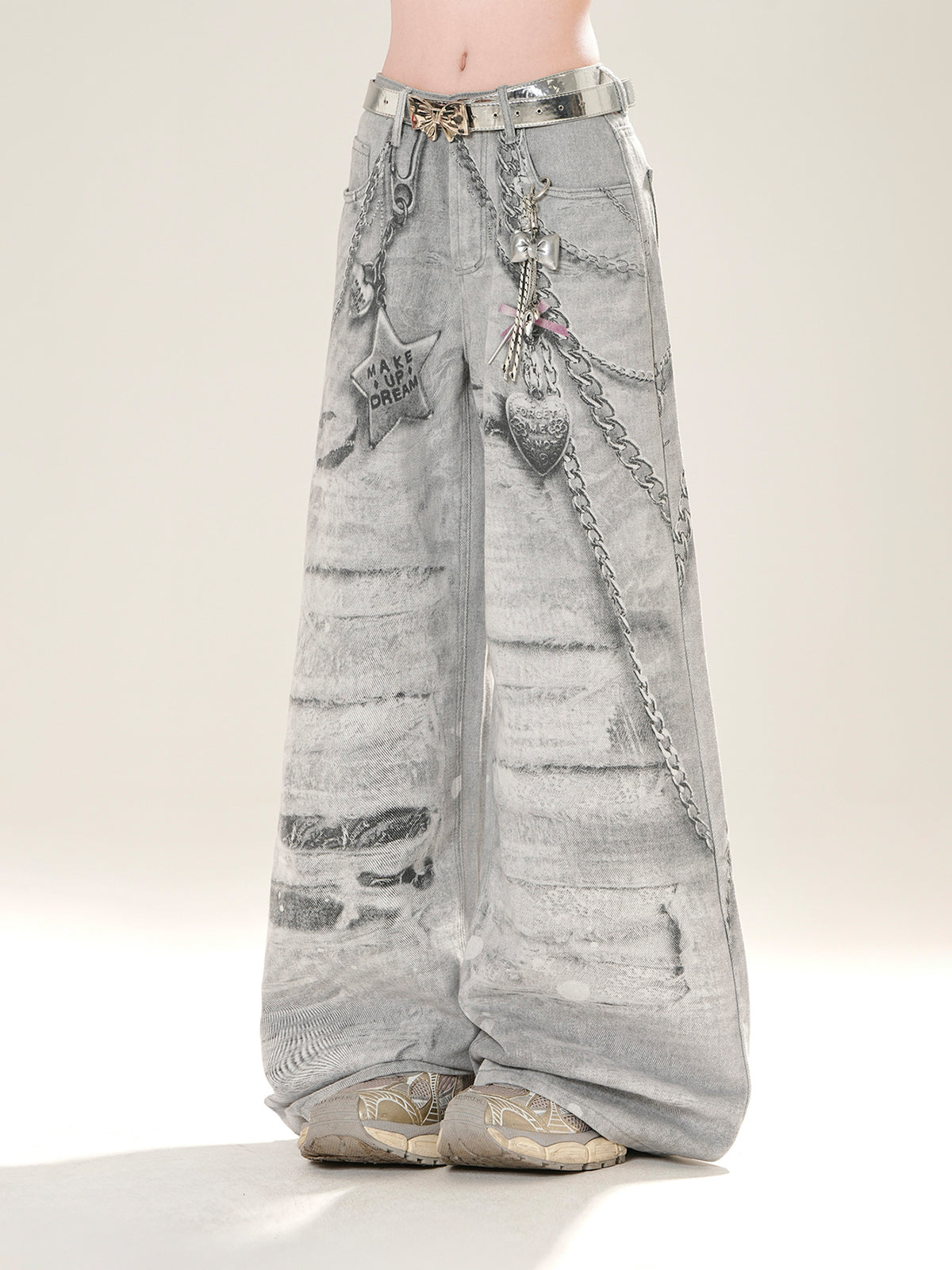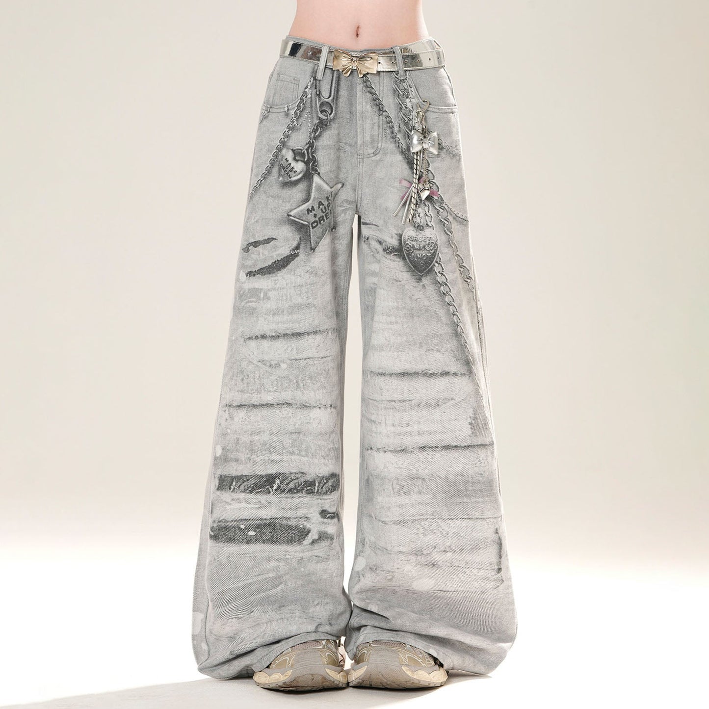 Young Eyes Long Legs Star Player Gray Baggy Jeans