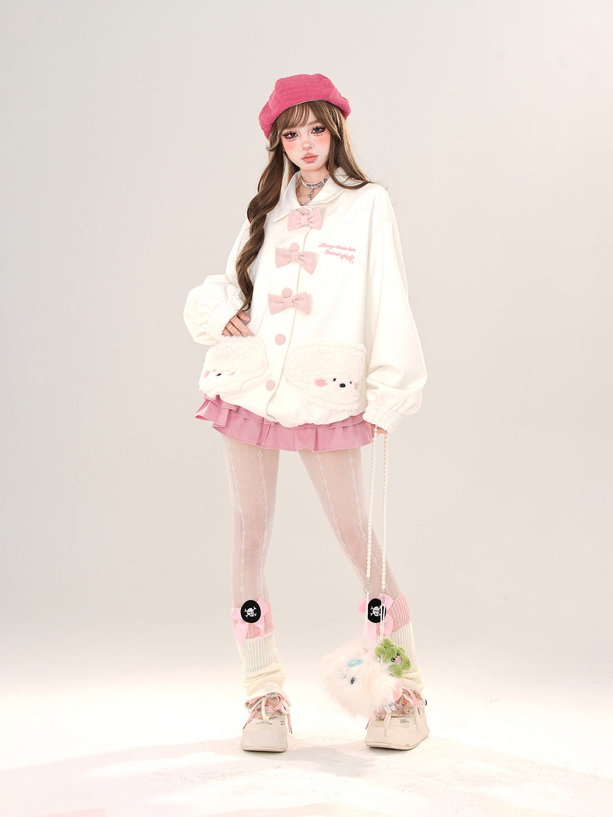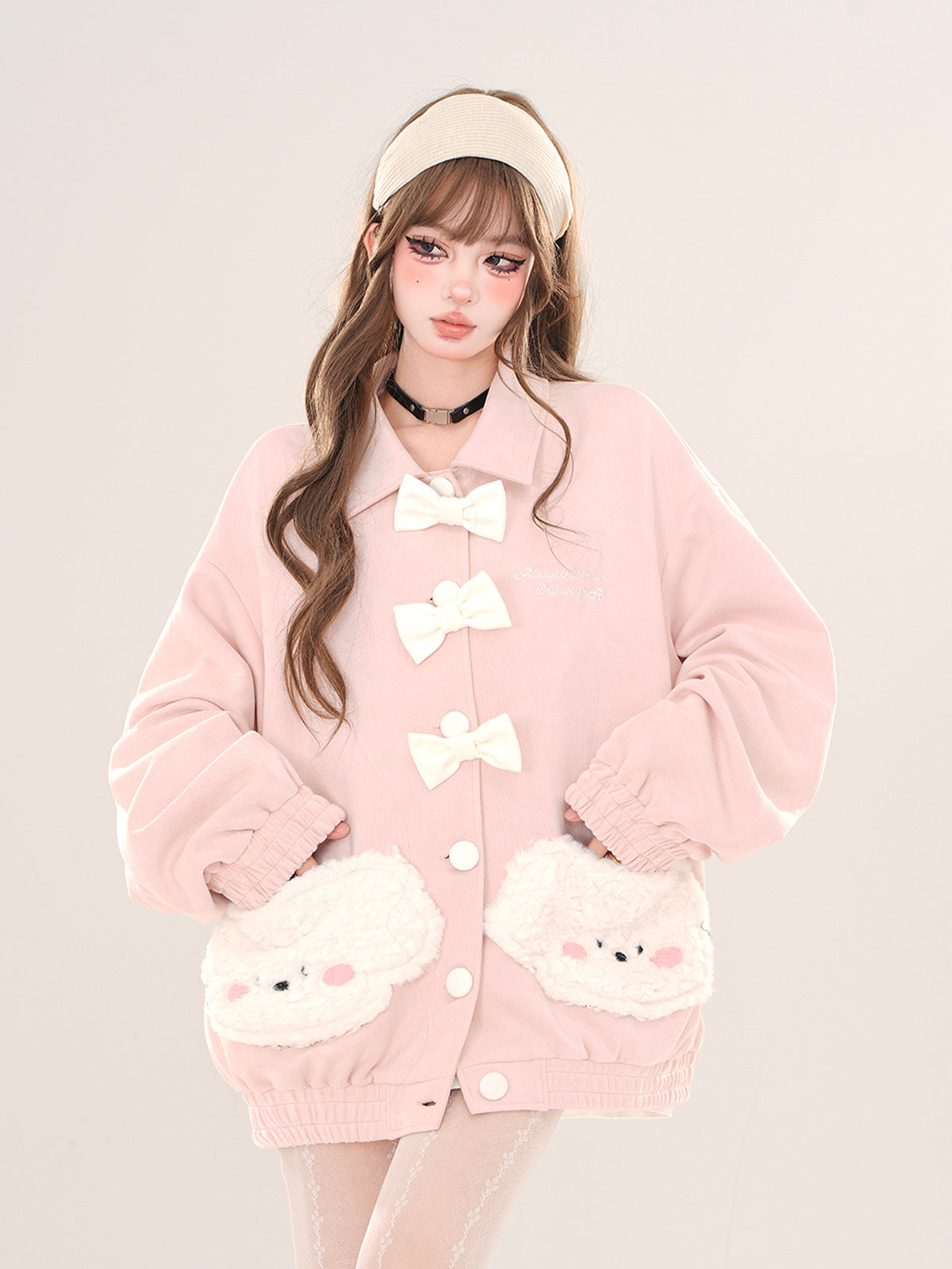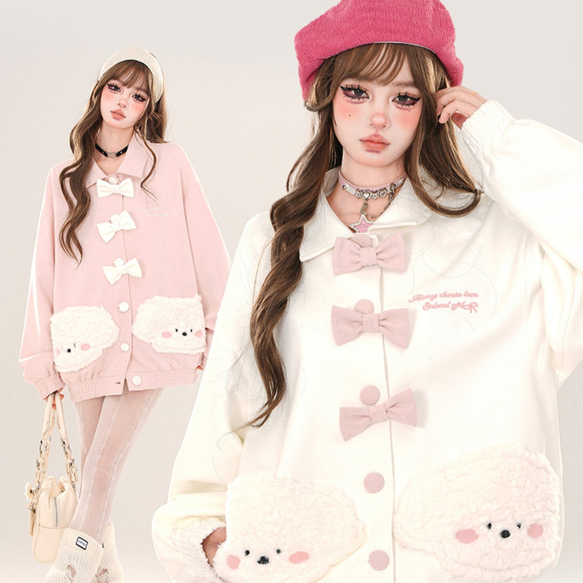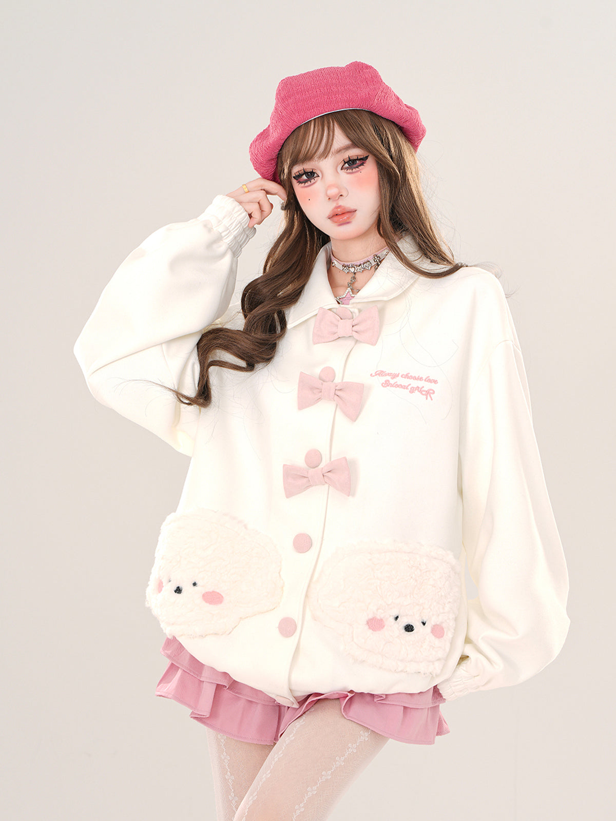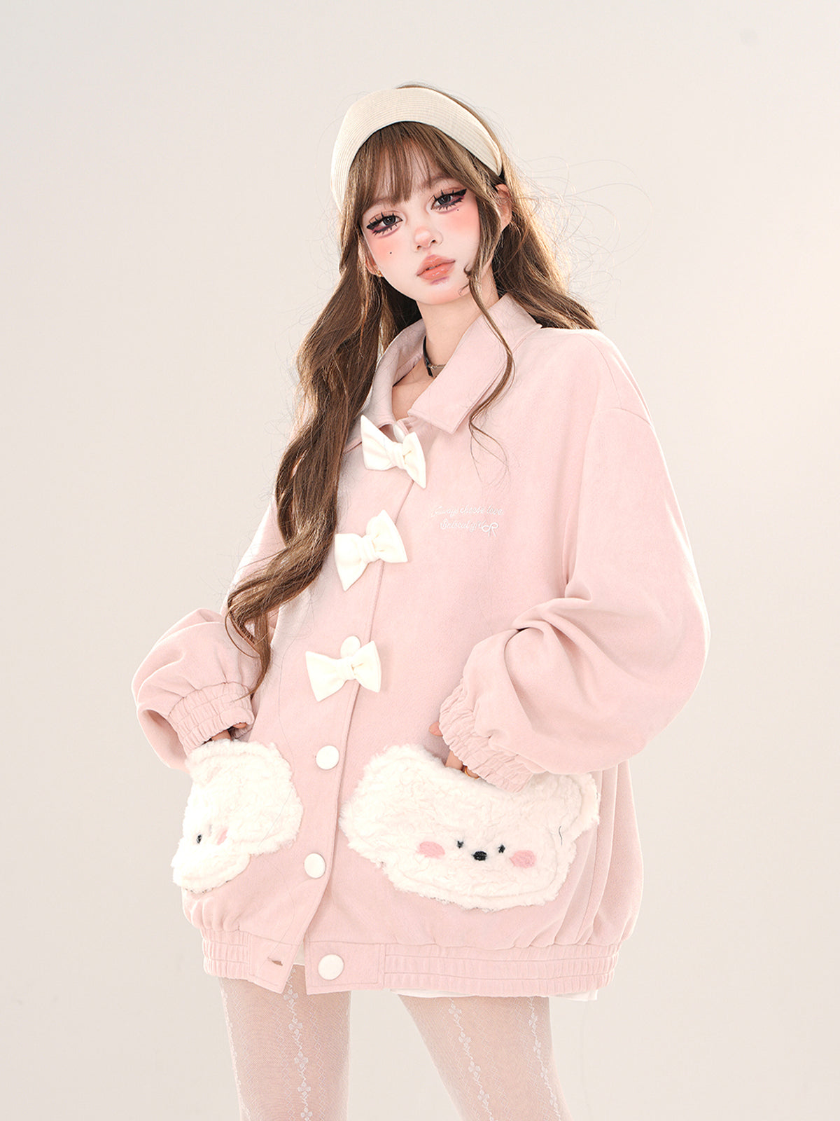 Young Eyes Love Puppy Bow White Pink Jacket