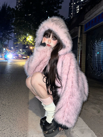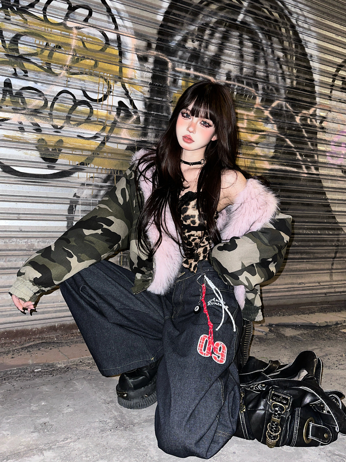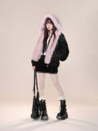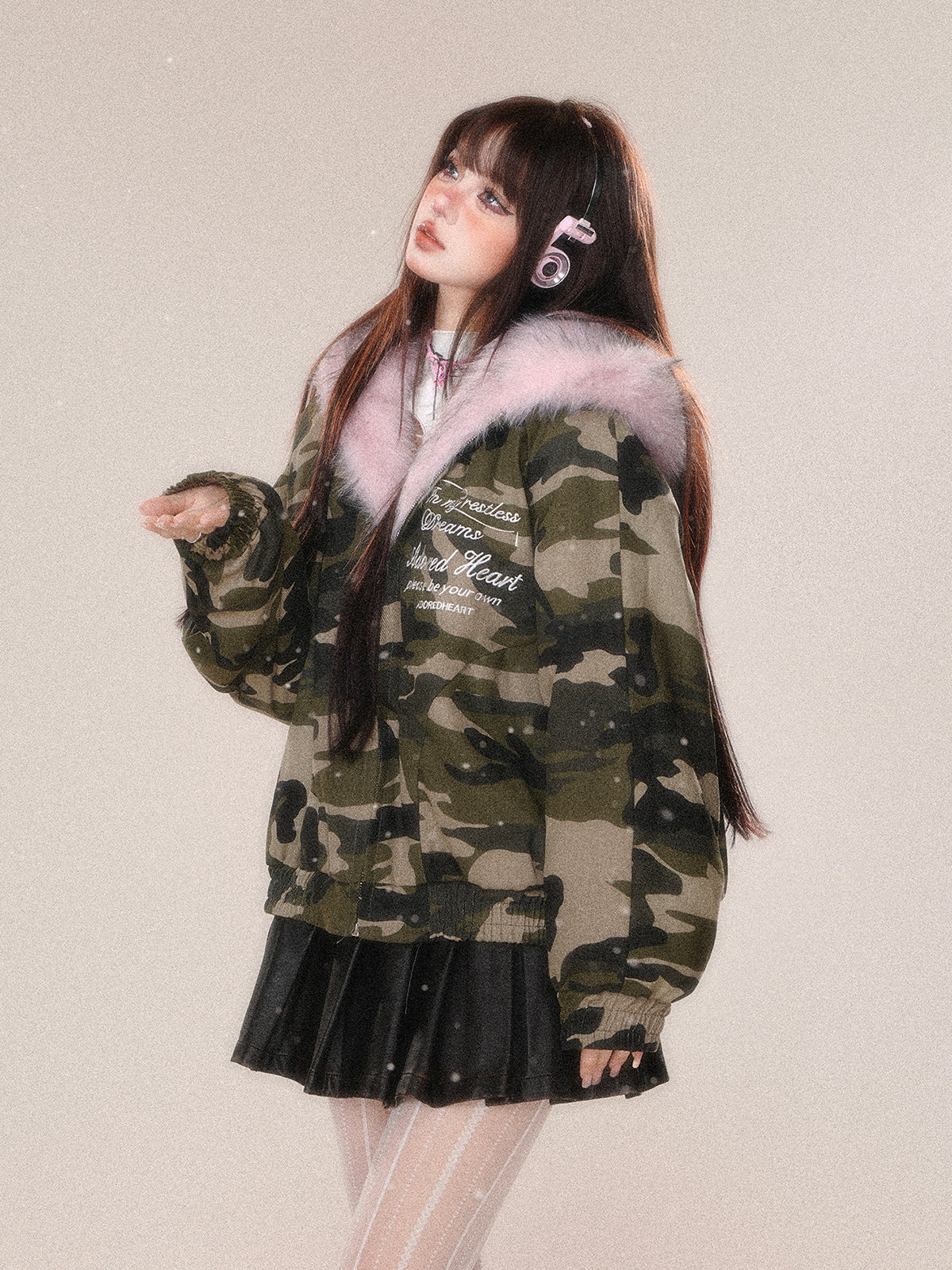 Young Eyes Rebellious Girl Black Pink Camouflage Fur Reversible Jacket